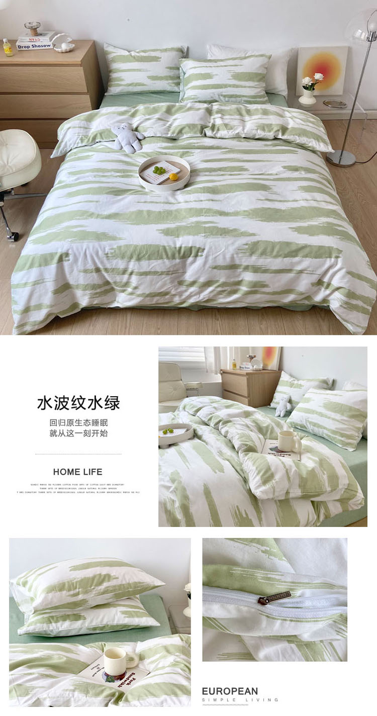 当前位置: 91家纺网 > 商品网购 > 床品套件 > 四件套 > 全棉普通四件套 > 梦家居 2022新款小清新系列全棉四件套 水波纹水绿