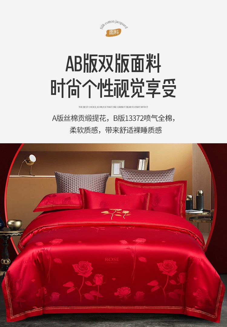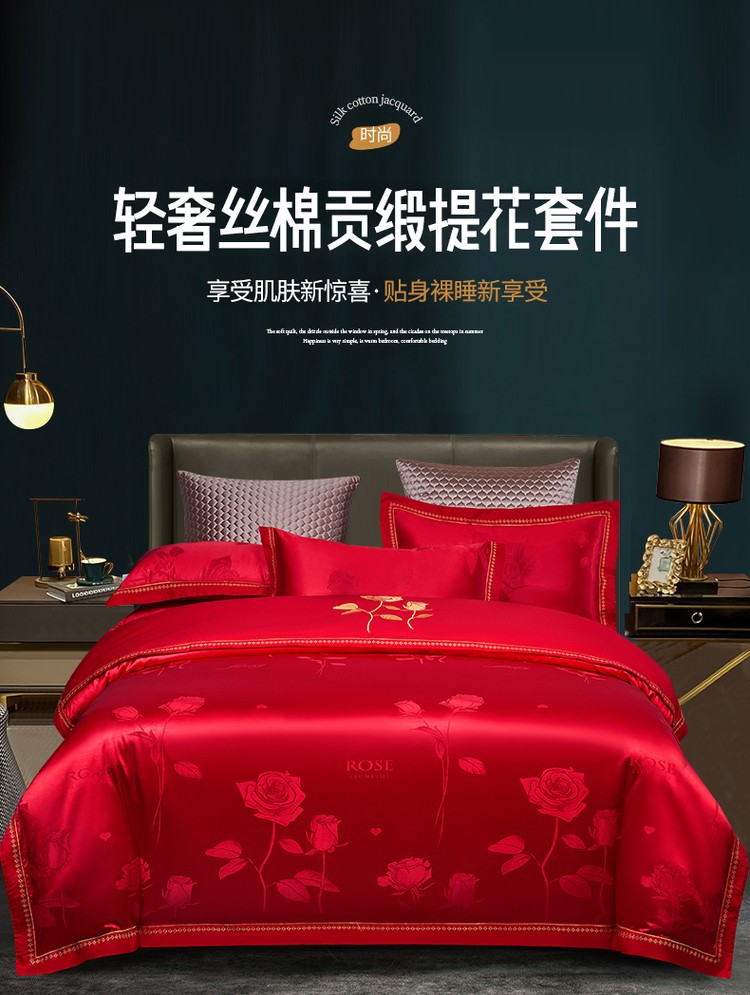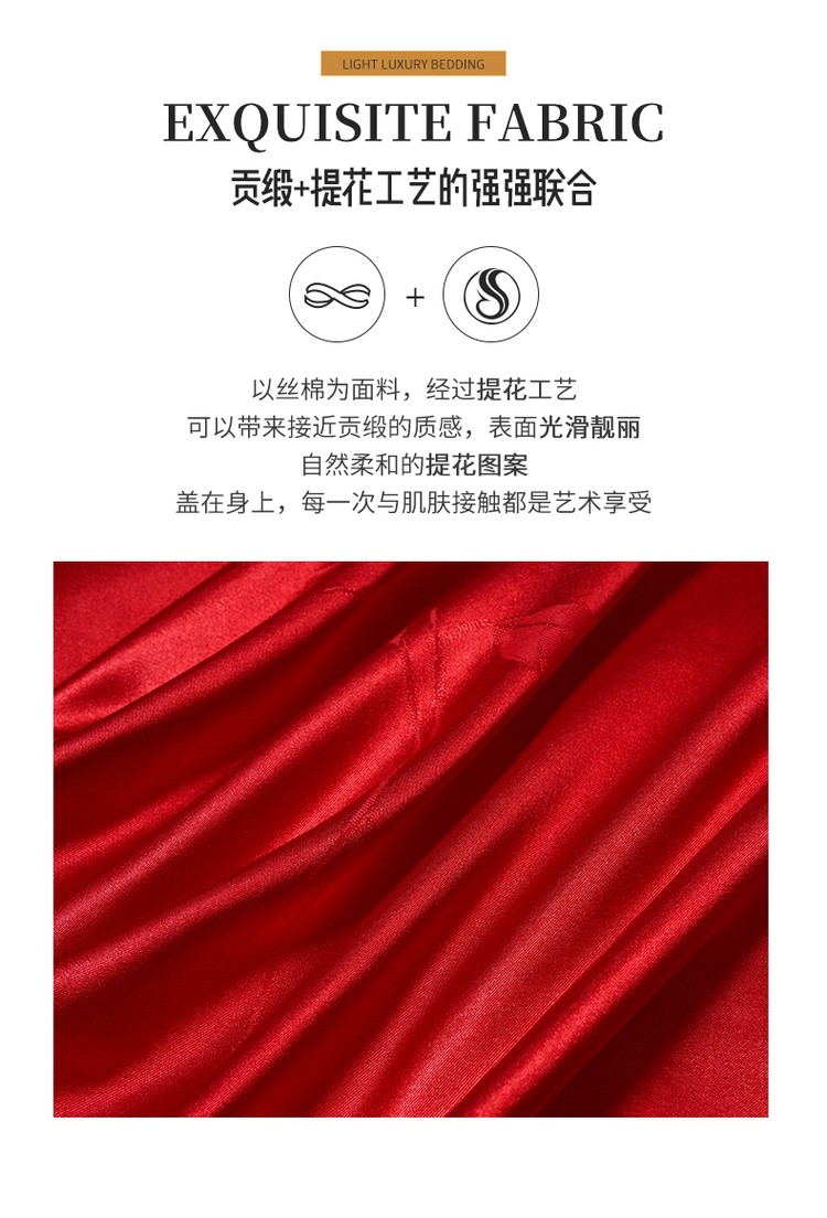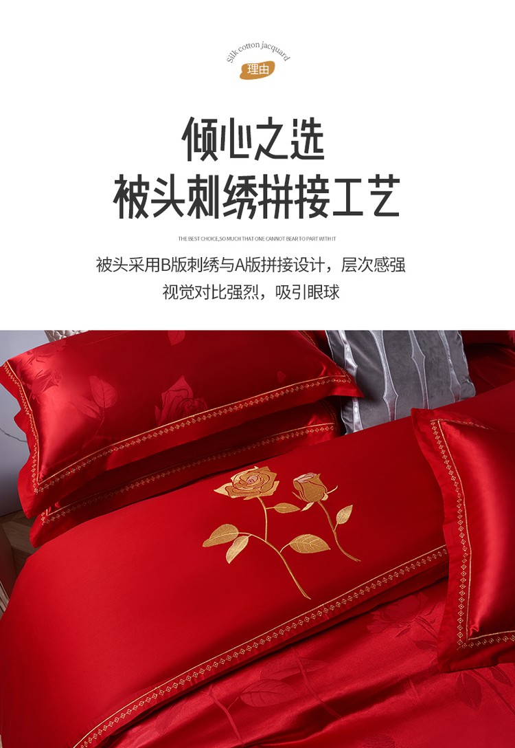 柔觉家纺 天丝刺绣贡缎提花全棉四件套,雅普诺-红灰