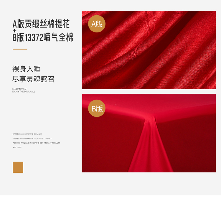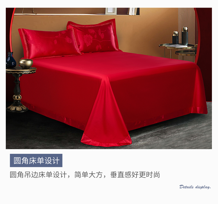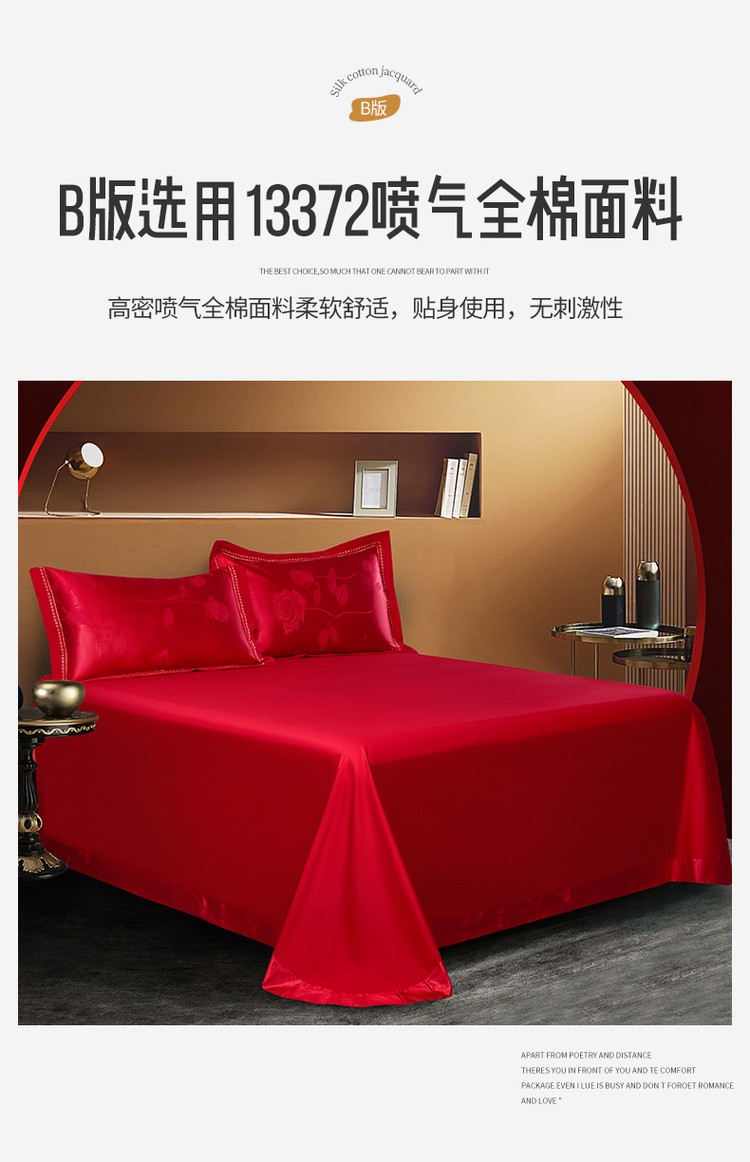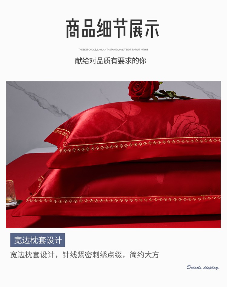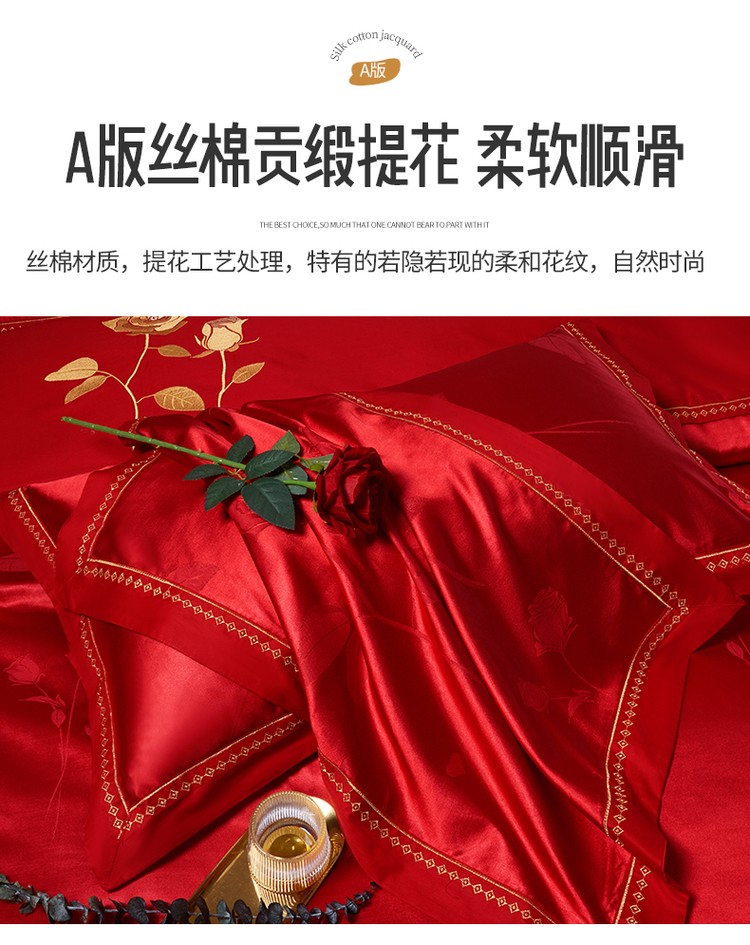 柔觉家纺 天丝刺绣贡缎提花全棉四件套,雅普诺-红灰