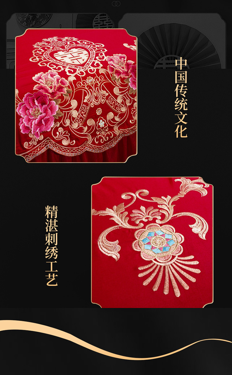 (总)慕她婚庆2025年新款婚庆四件套大红色刺绣结婚床上用品,恩爱龙凤,龙凤欢腾,秦晋龙凤,喜韵龙凤,幸福龙凤,幸福永驻,雅韵龙凤,国色牡丹,吉祥如意,龙凤喝彩