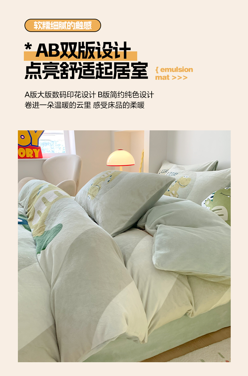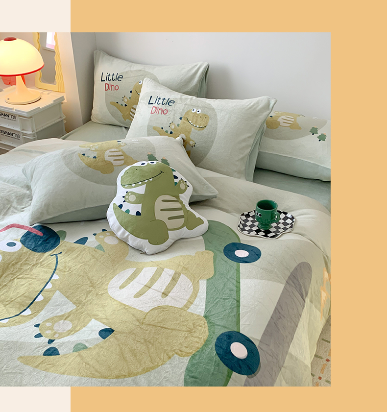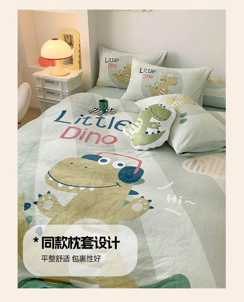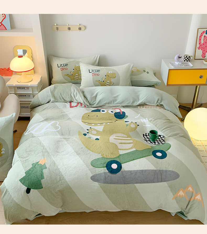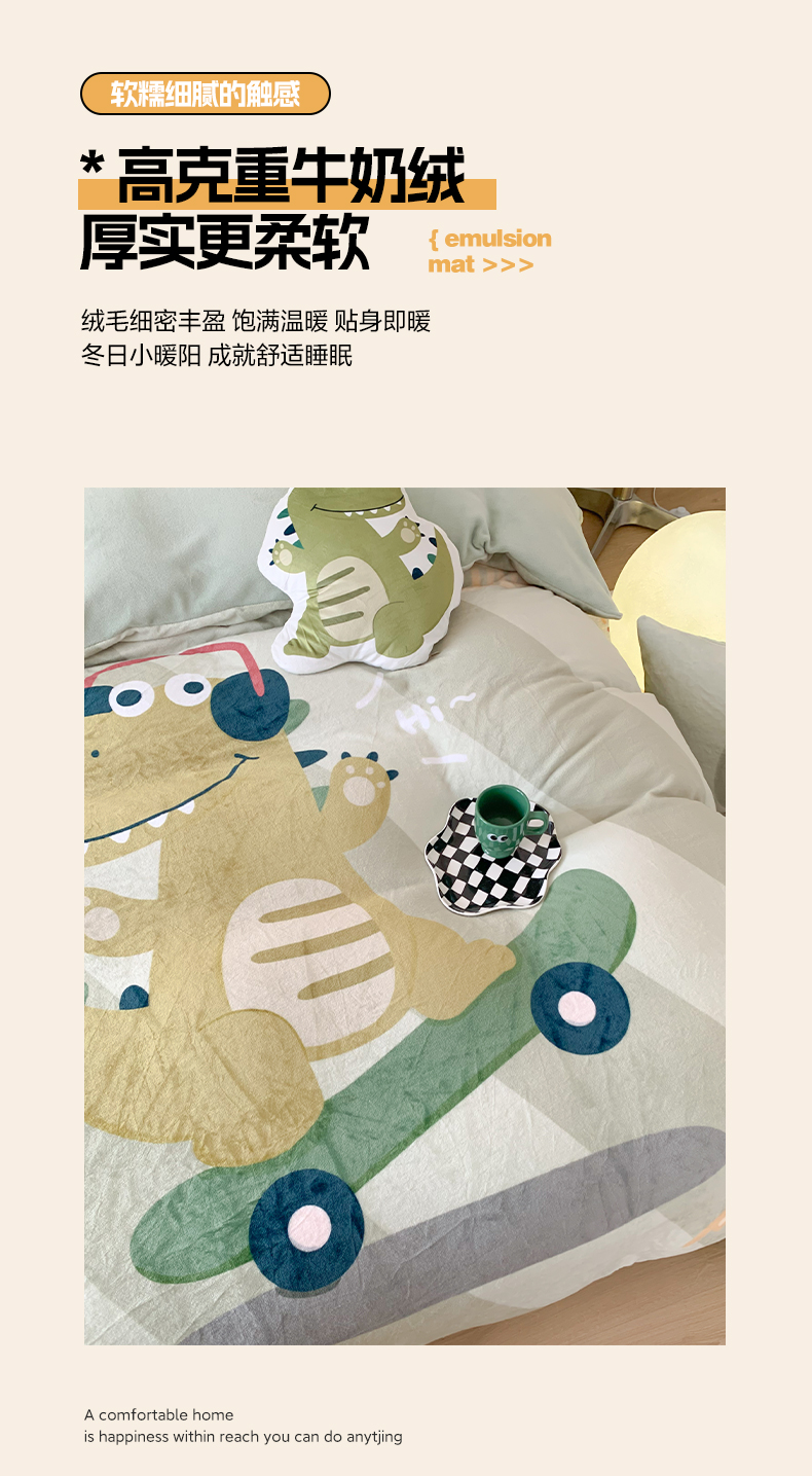 澳萝拉2023新款大版数码牛奶绒五件套配送同款小抱枕 滑板龙
