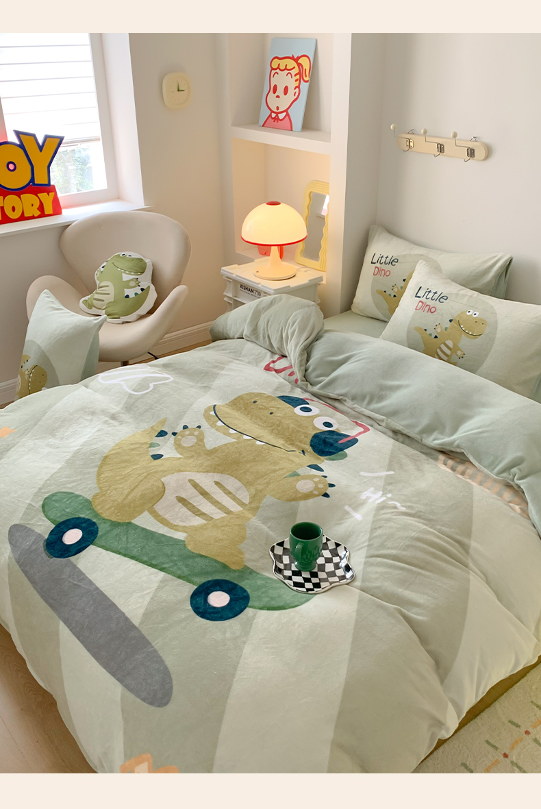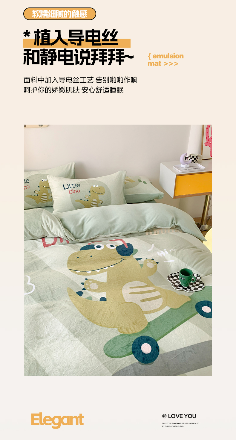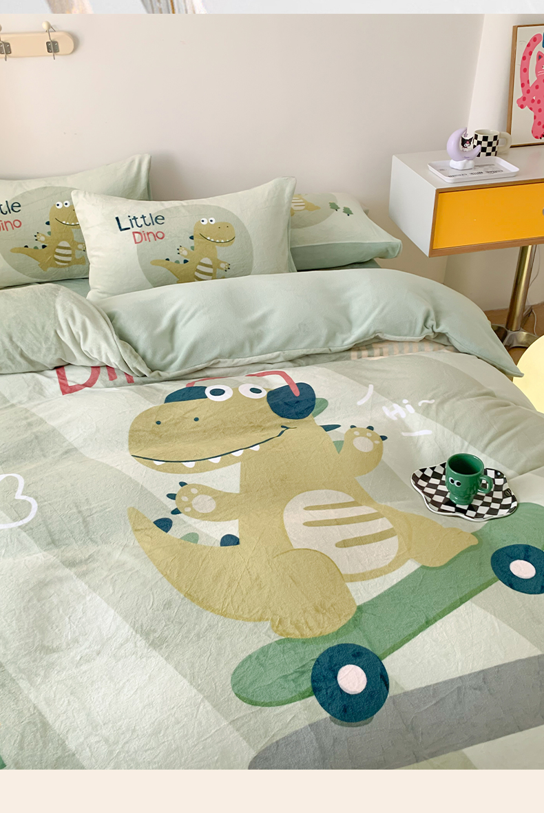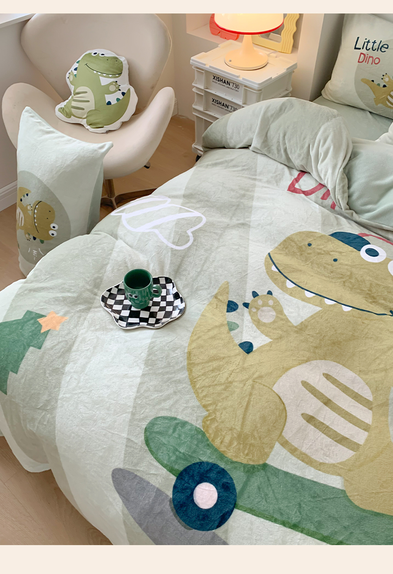 澳萝拉2023新款大版数码牛奶绒五件套配送同款小抱枕 滑板龙