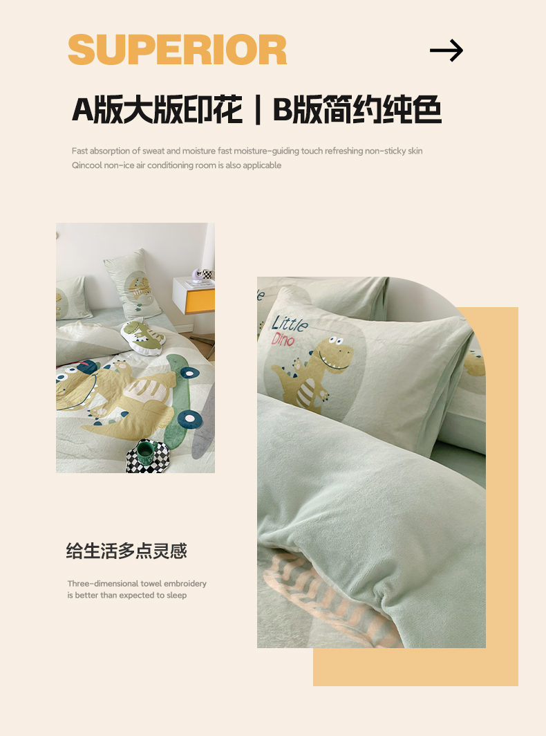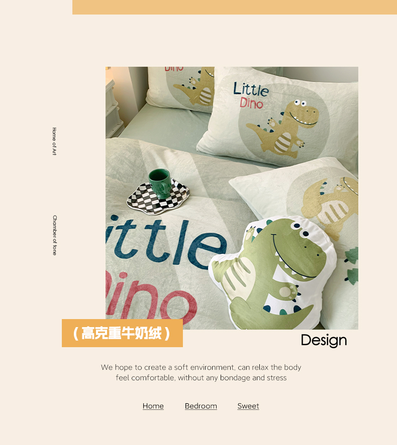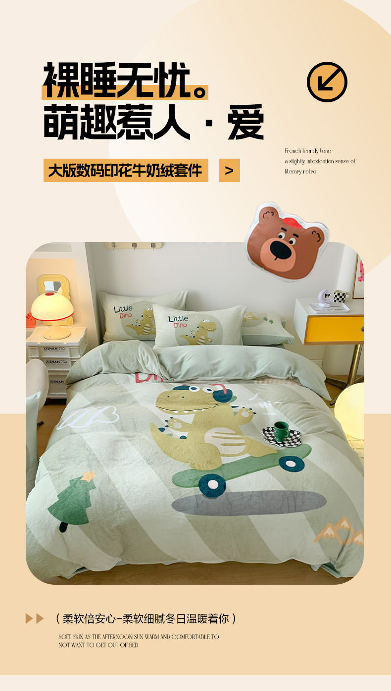 商品名称:澳萝拉2023新款大版数码牛奶绒五件套配送同款小抱枕 滑板龙