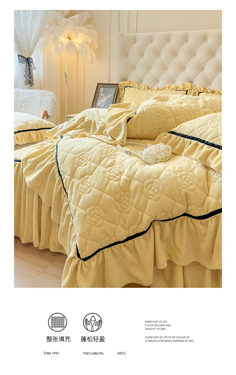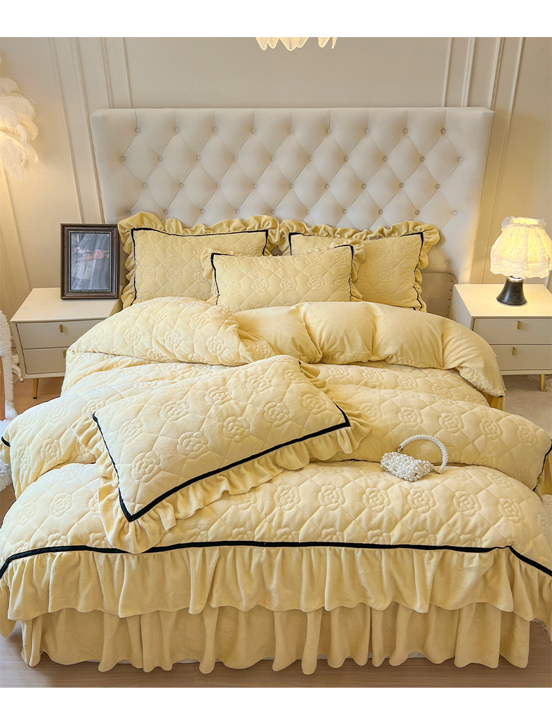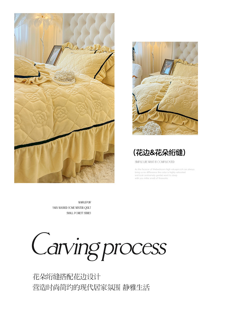 当前位置: 91家纺网 > 商品网购 > 床品套件 > 四件套 > 牛奶绒四件套 > 麒豆豆 新款高克重加厚保暖牛奶绒法式大花边四件套-眷恋 眷恋-奶油黄