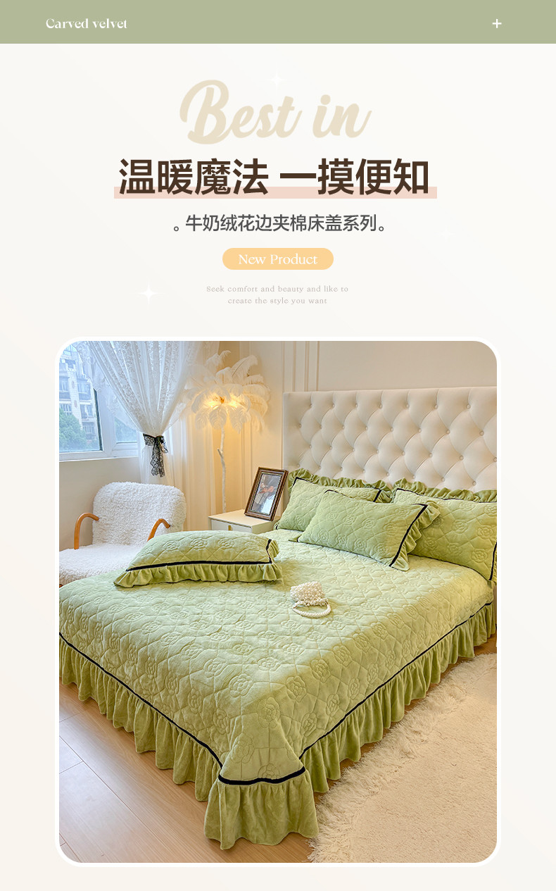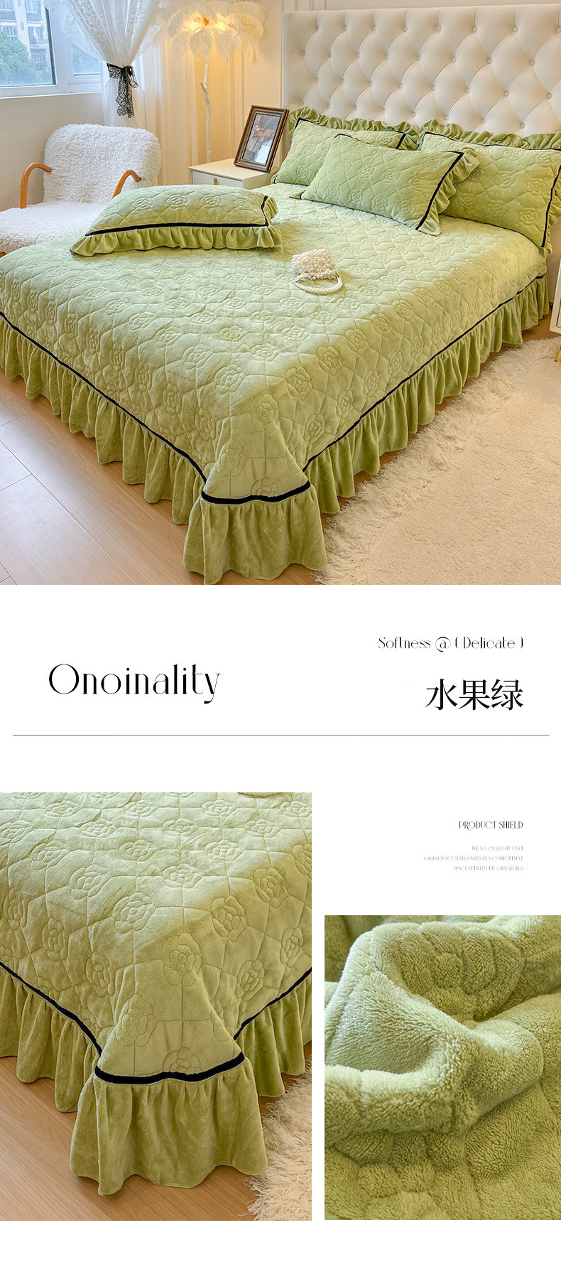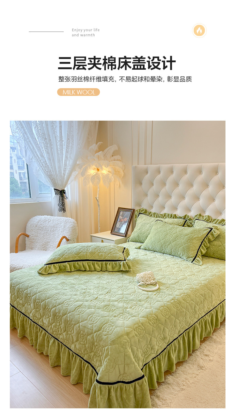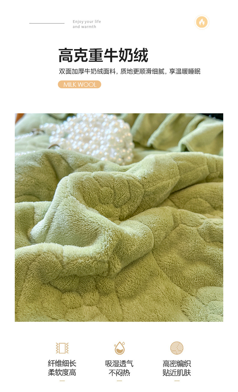 商品名称:麒豆豆 2023新款高克重加厚保暖牛奶绒眷恋系列单床盖 眷恋-水果绿