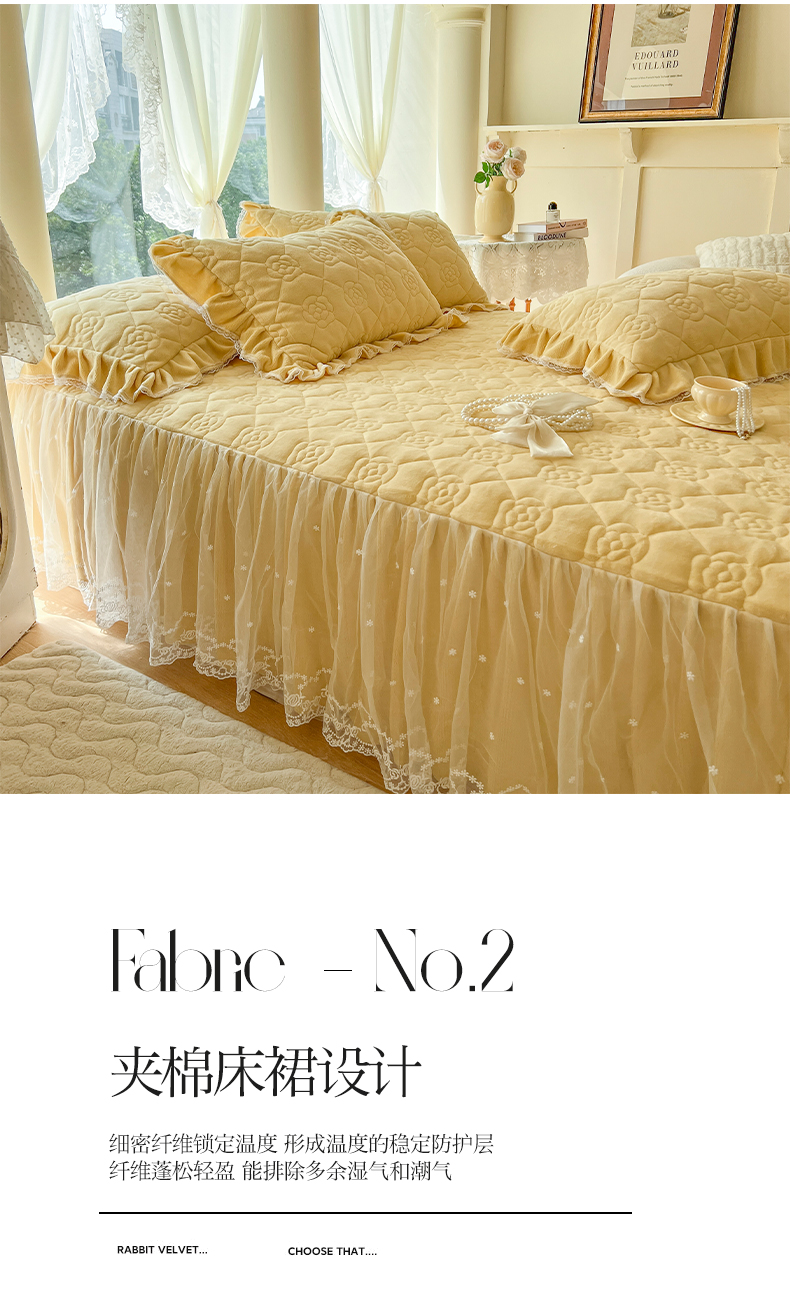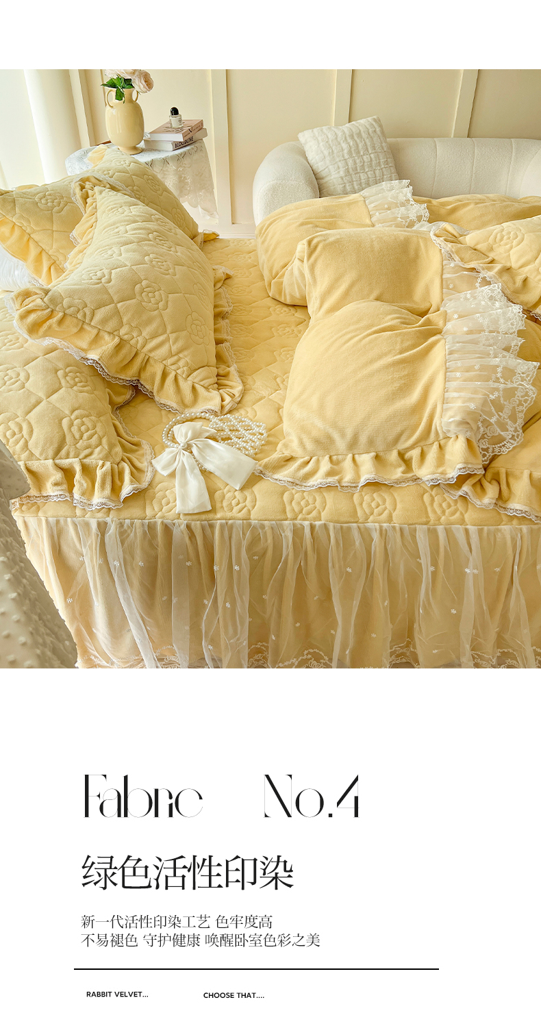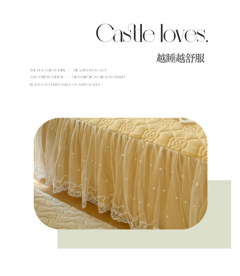 麒豆豆 2023新款高克重牛奶绒花边单床裙-山茶系列 山茶-黄