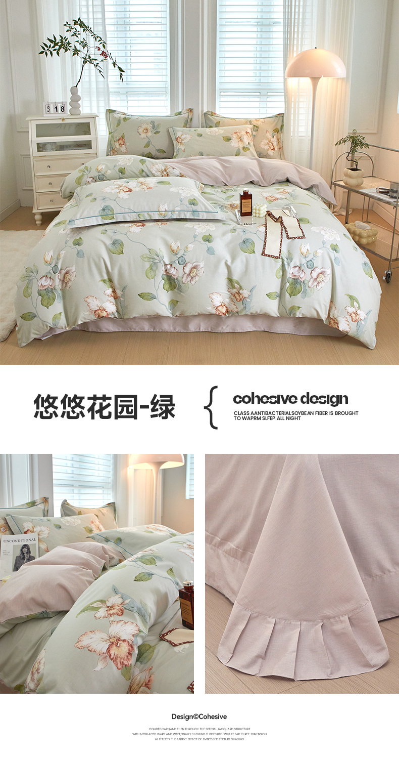 沐白家居 2024新款全棉13376全棉印花四件套 悠悠花园-绿
