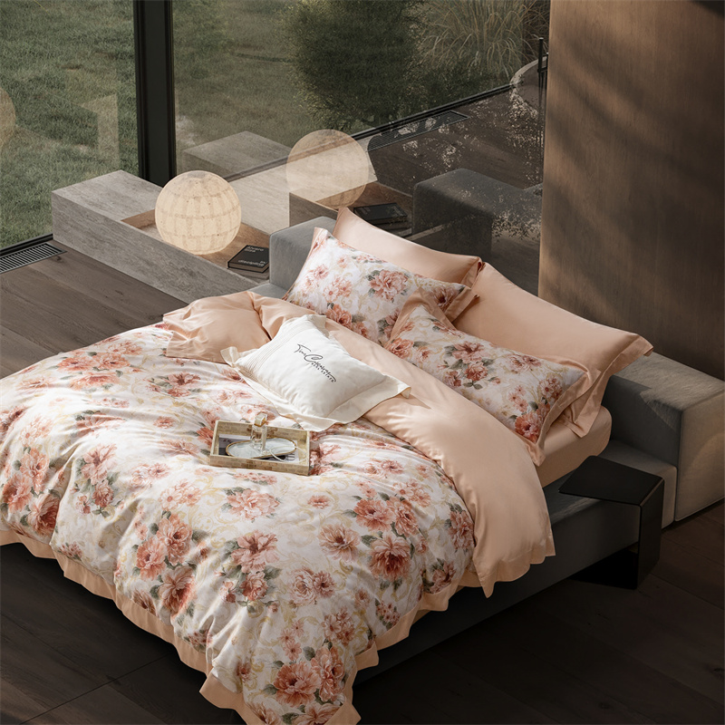 (总)榻尚家居 2025新款天丝床盖夏被夏凉被空调被四件套-佩利兹,佩利兹床盖夏被四件套-粉色,佩利兹床盖夏被四件套-香槟