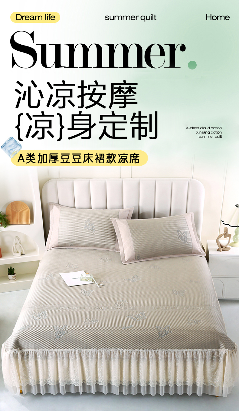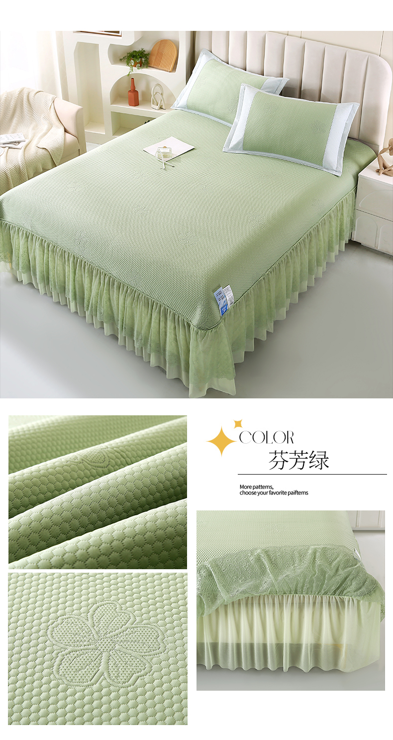 莱轩席业 2025新款A类加厚豆豆床裙款凉席 芬芳绿