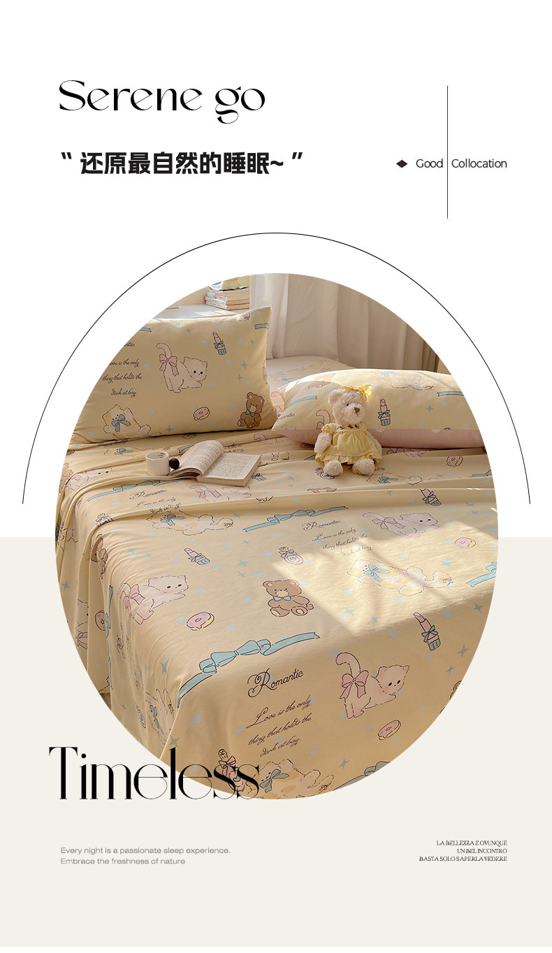六巷胡同 2025新款40s13070全棉纯棉卡通单品系列床单单件-单床单 猫咪甜甜圈