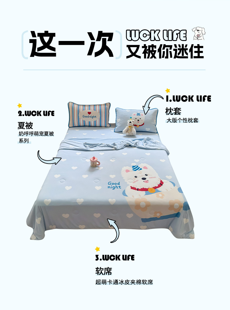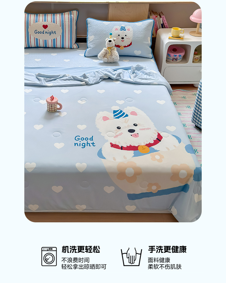 商品名称:RYB红黄兰 2025新款A类INS原创大版卡通冰皮锦氨超凉感夏被夏凉被空调被 茶杯西高地夏被