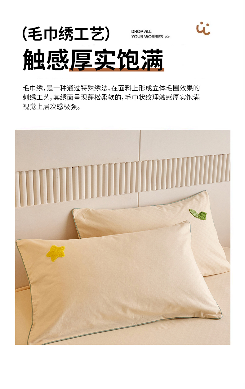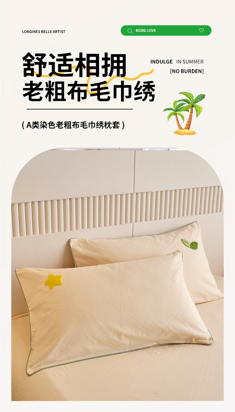 春皖家纺 2025新款全棉纯棉提花粗布毛巾绣单枕套 枕套单件-风格二 小竹熊-米
