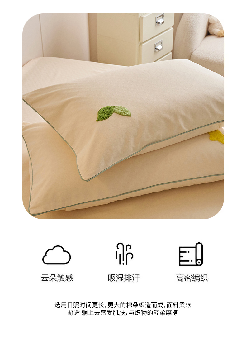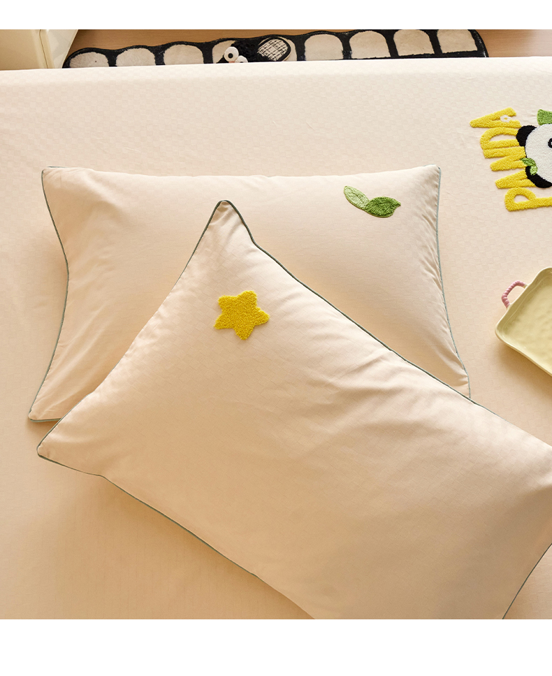 商品名称:春皖家纺 2025新款全棉纯棉提花粗布毛巾绣单枕套 枕套单件-风格二 小竹熊-米
