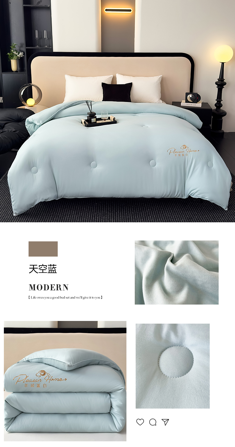 • 91家纺网 家纺一手货源 找家纺 蓝雀翎 2025新款刺绣羊绒蛋白锁温被被子被芯 月光灰