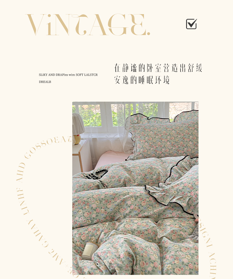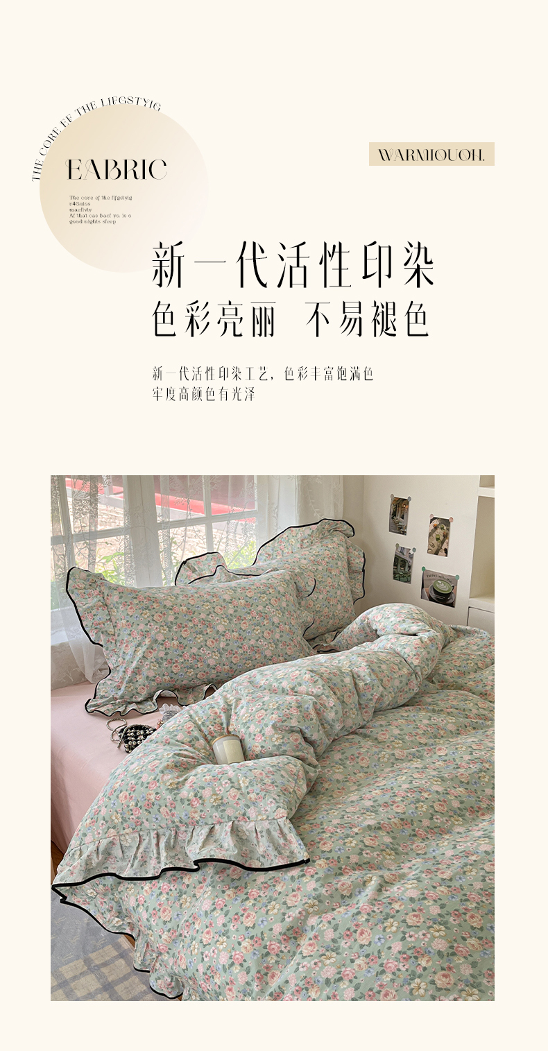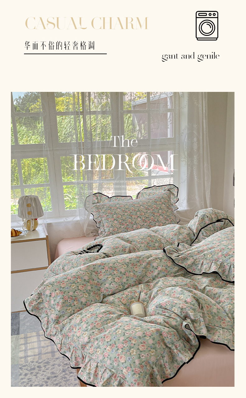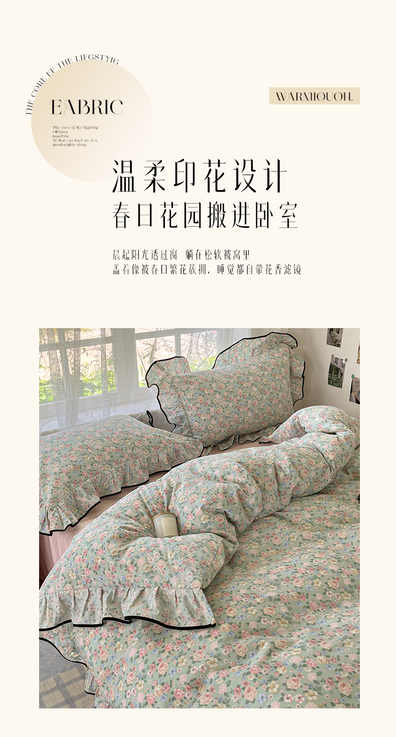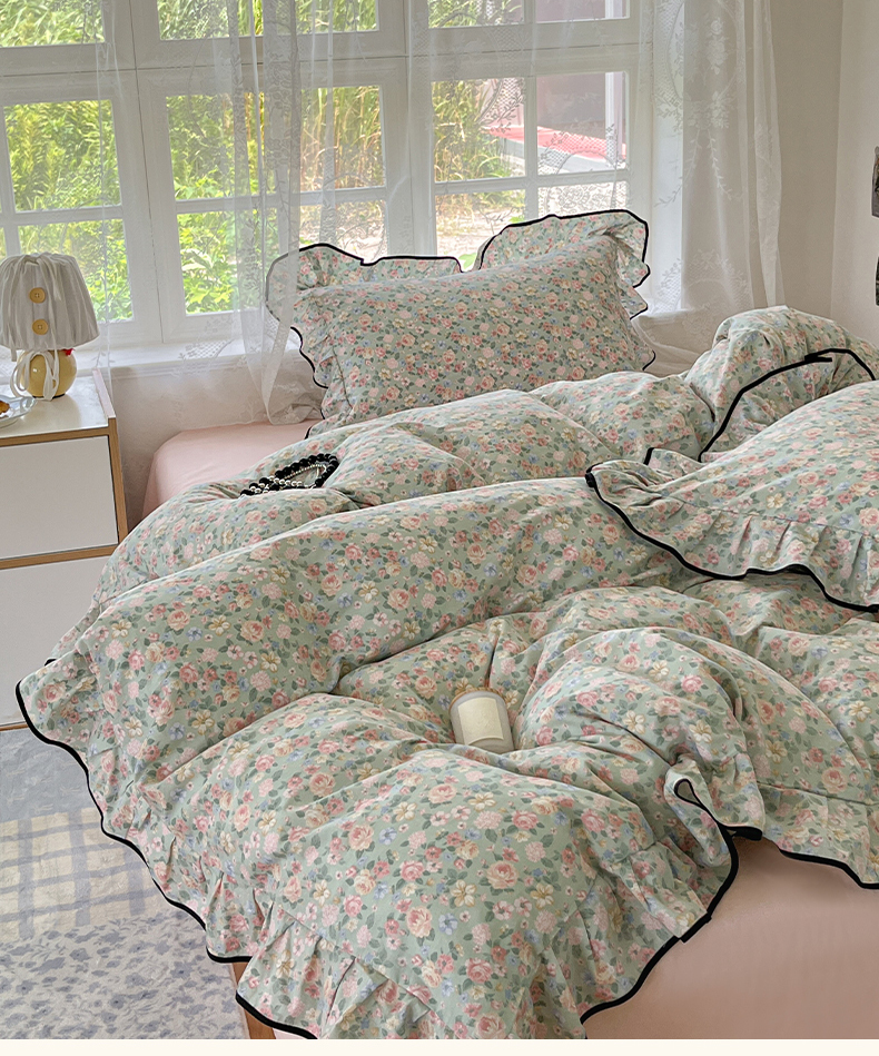 当前位置: 91家纺网 > 商品网购 > 床品套件 > 四件套 > 全棉普通四件套 > 乐美家纺 2025新款韩版全棉纯棉印花花边四件套 柏林梦境绿