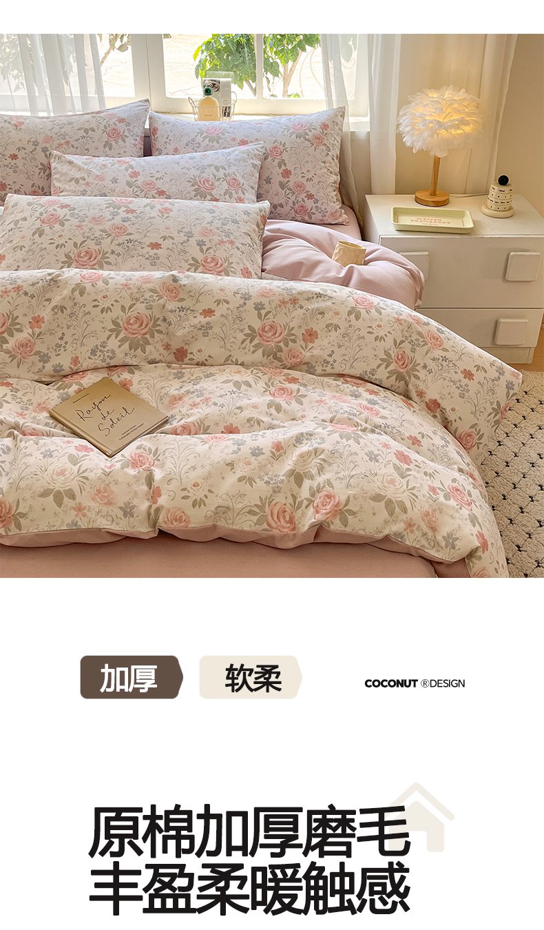当前位置: 91家纺网 > 商品网购 > 床品套件 > 四件套 > 普通磨毛四件套 > 涵宸家纺 2025新款原棉加厚磨毛印花四件套 花田与夏