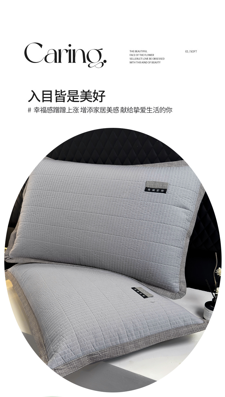 • 91家纺网 家纺一手货源 找家纺 呦呦南宋 纯棉绗缝48x74cm水洗棉枕套中层夹棉单品拉链款一对装全棉高端定制款平边枕套 平边青