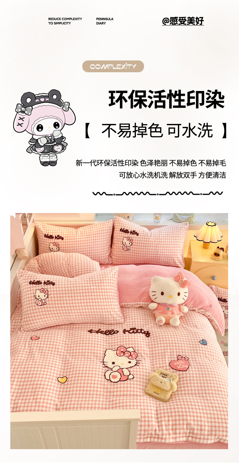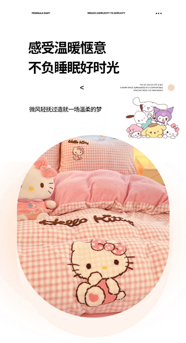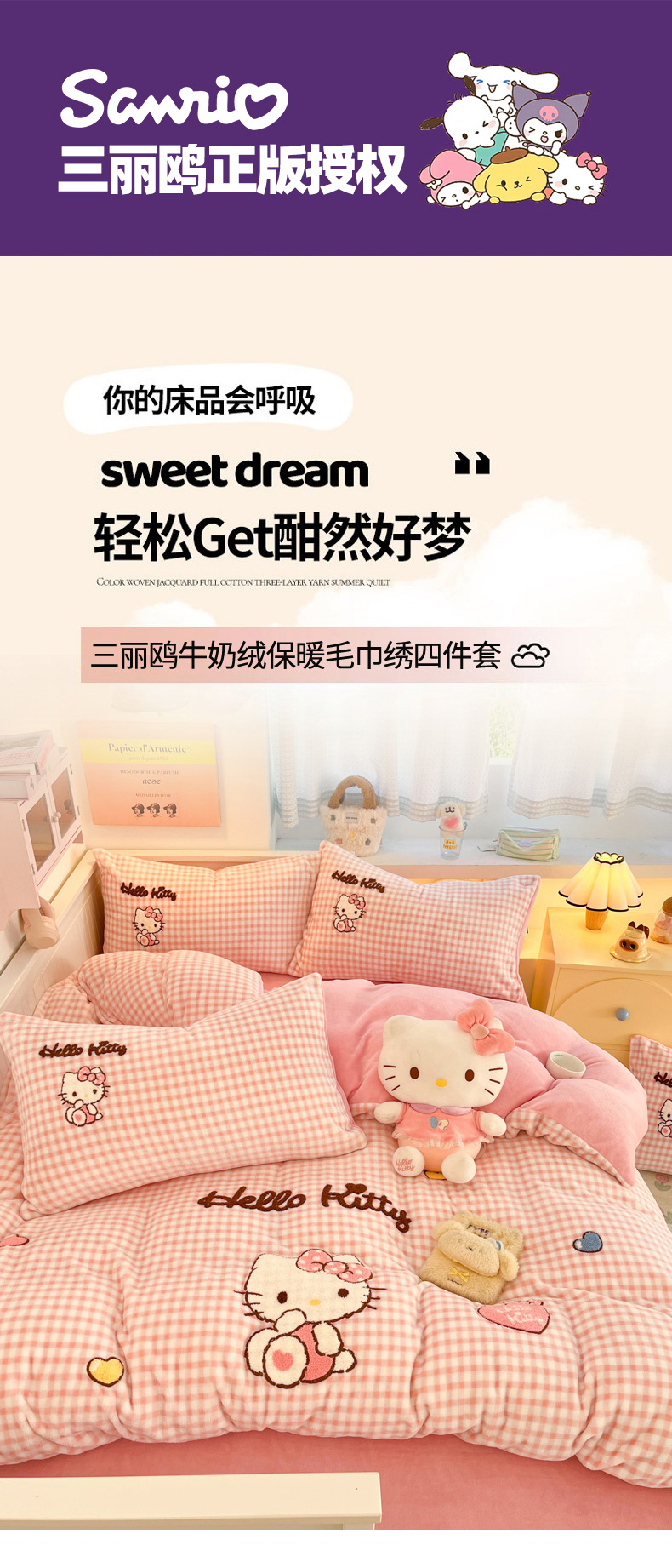 当前位置: 91家纺网 > 商品网购 > 床品套件 > 四件套 > 牛奶绒四件套 > 暮思家居 2025新款正版授权高端毛巾绣绣花牛奶绒三丽鸥四件套 毛巾绣-公主KT