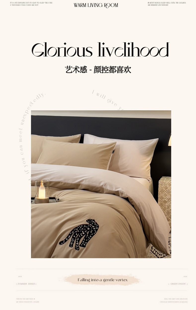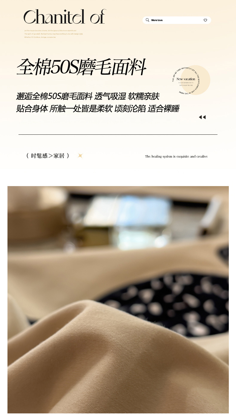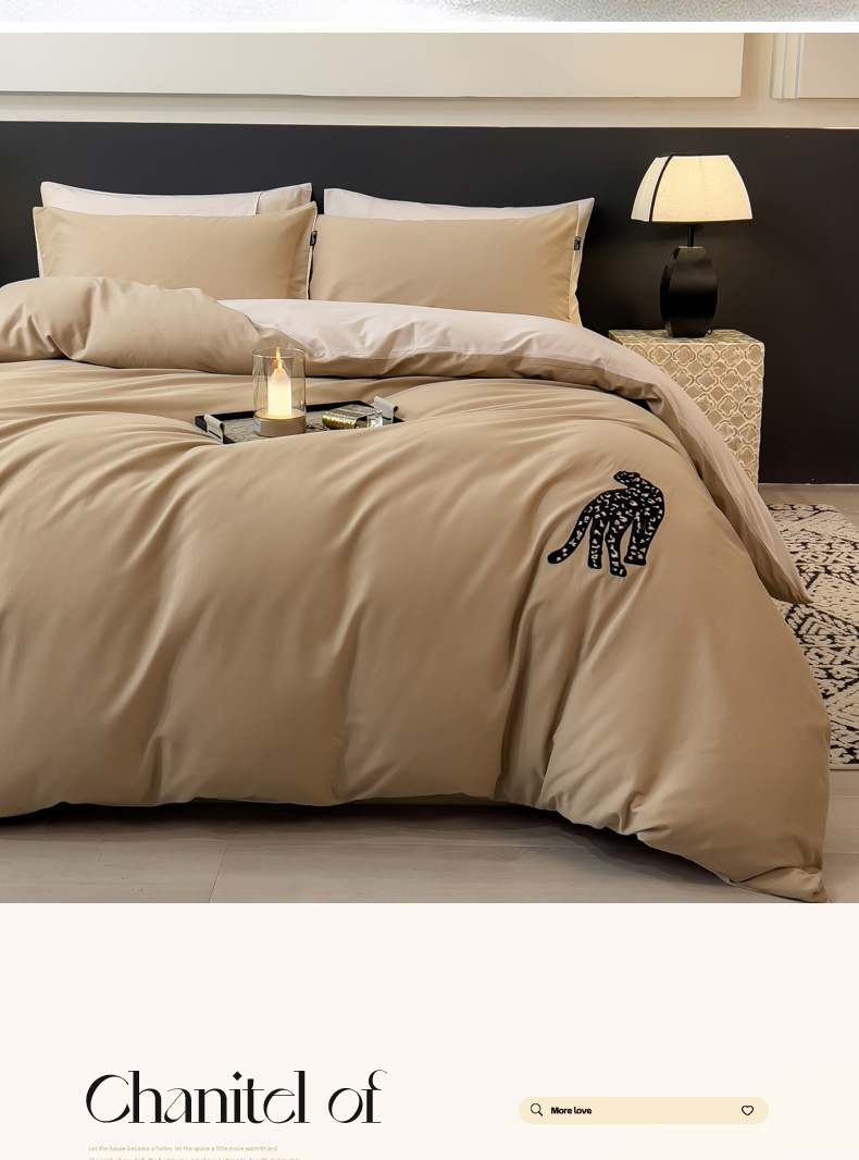 商品名称:印季家纺 2025新款全棉50s磨毛绣花-黑豹四件套 浅驼-玛卡粉