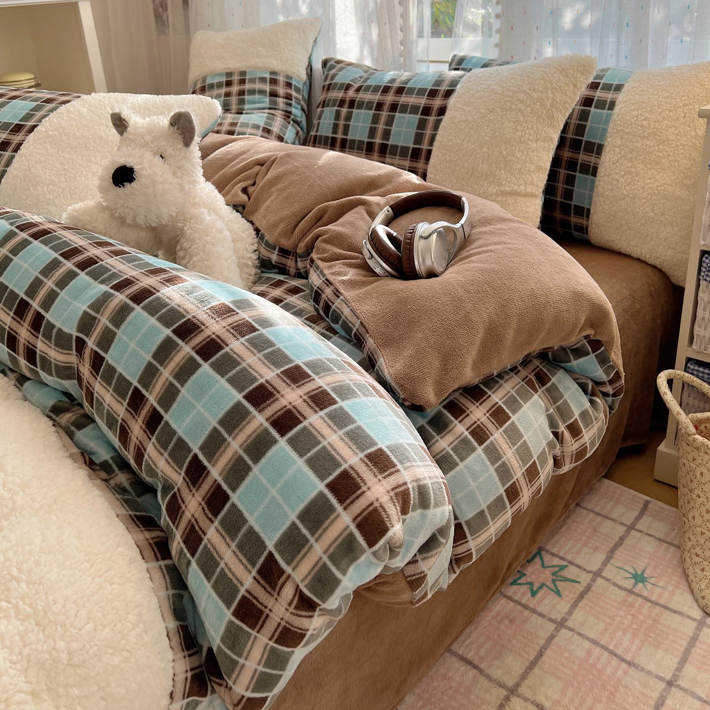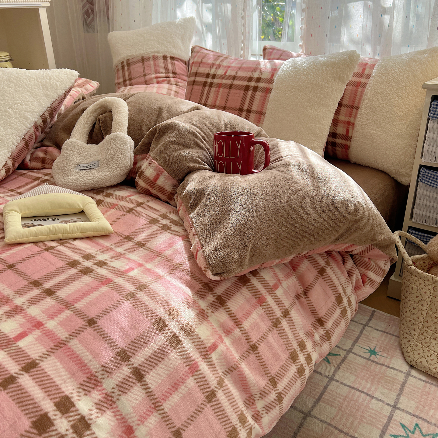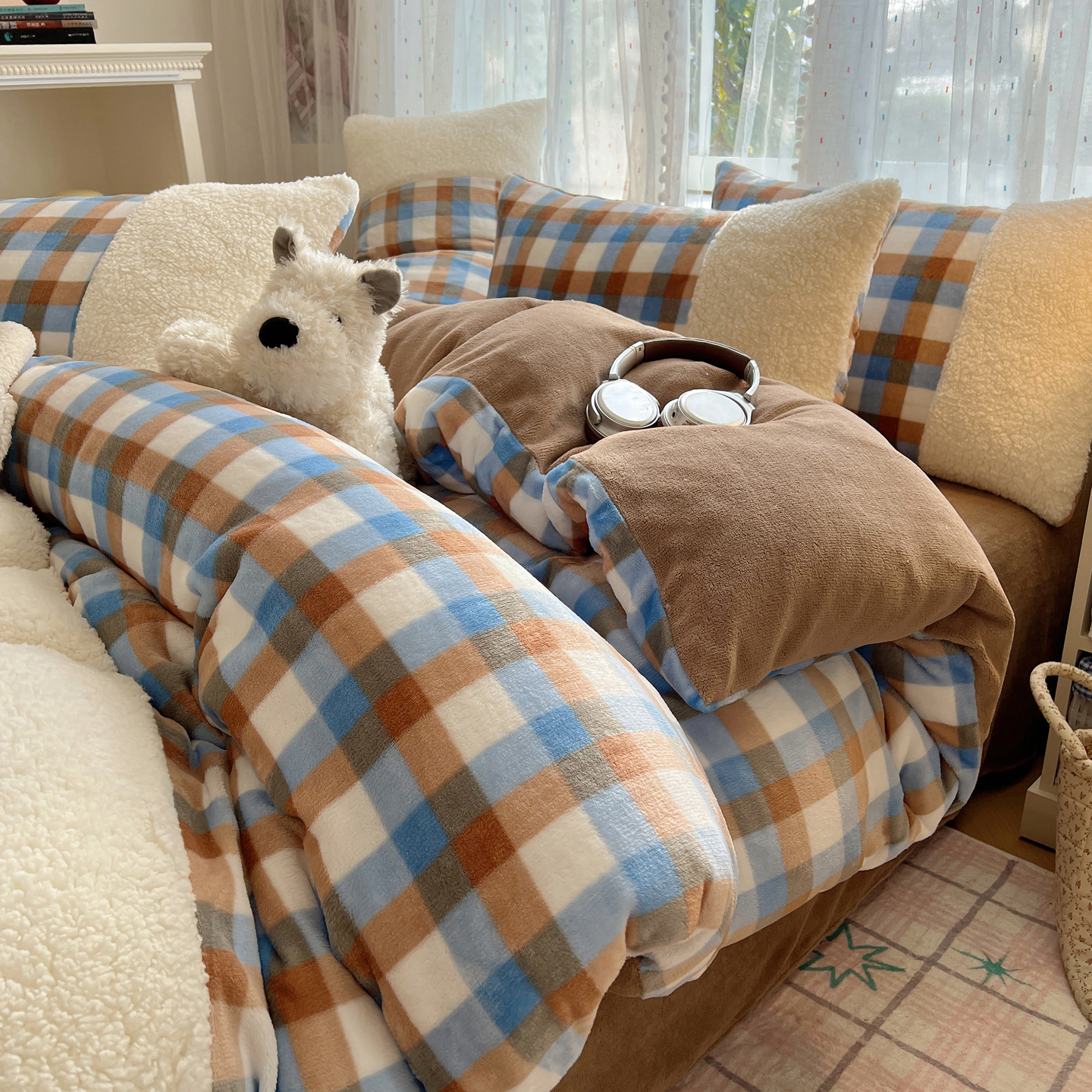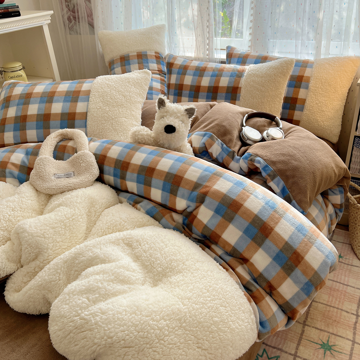(总)顾里家纺 2025新款复古博主风高克重羊羔毛拼接牛奶绒套件