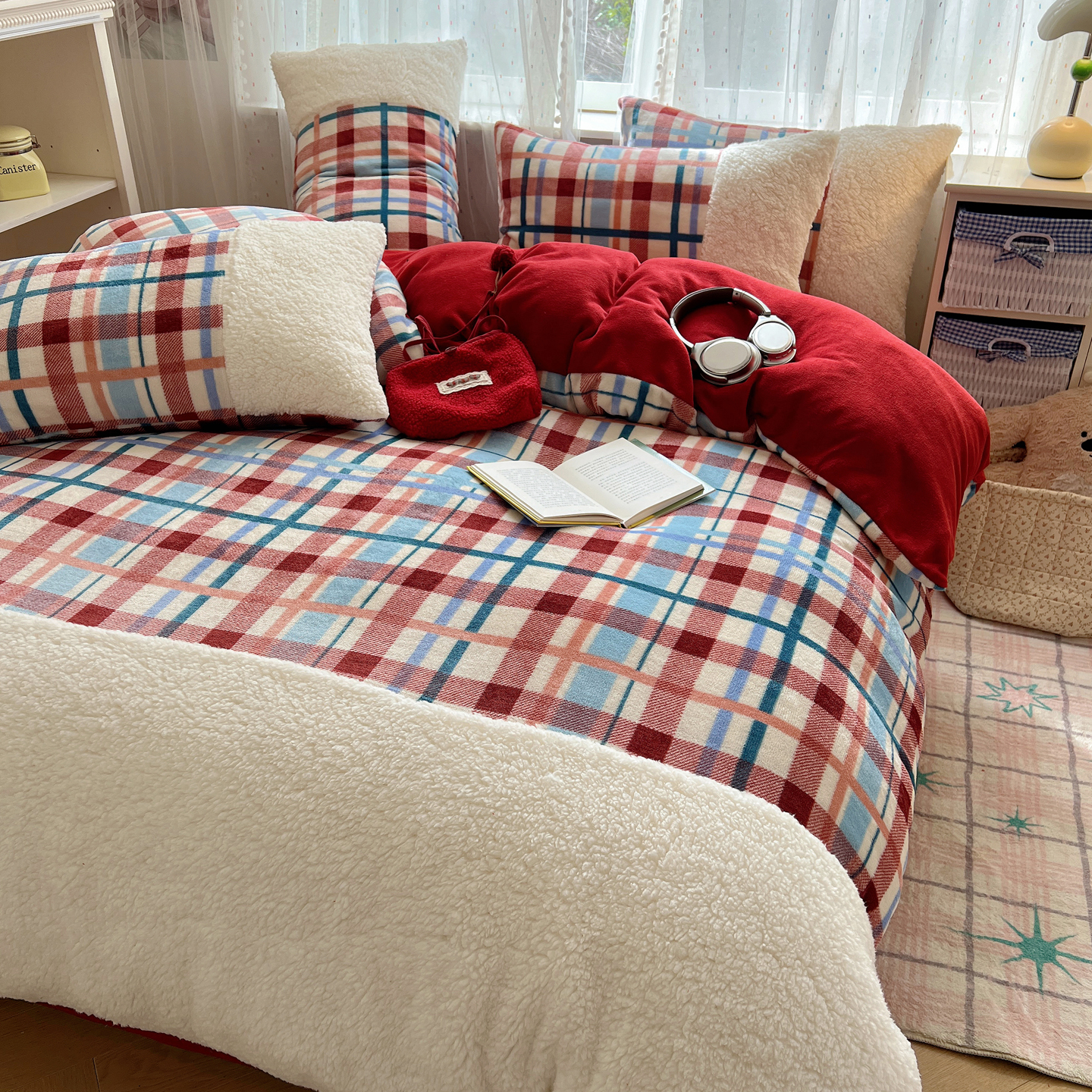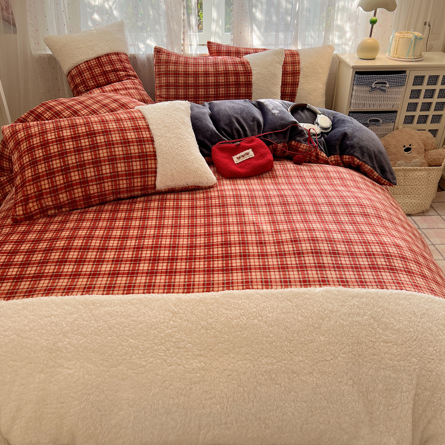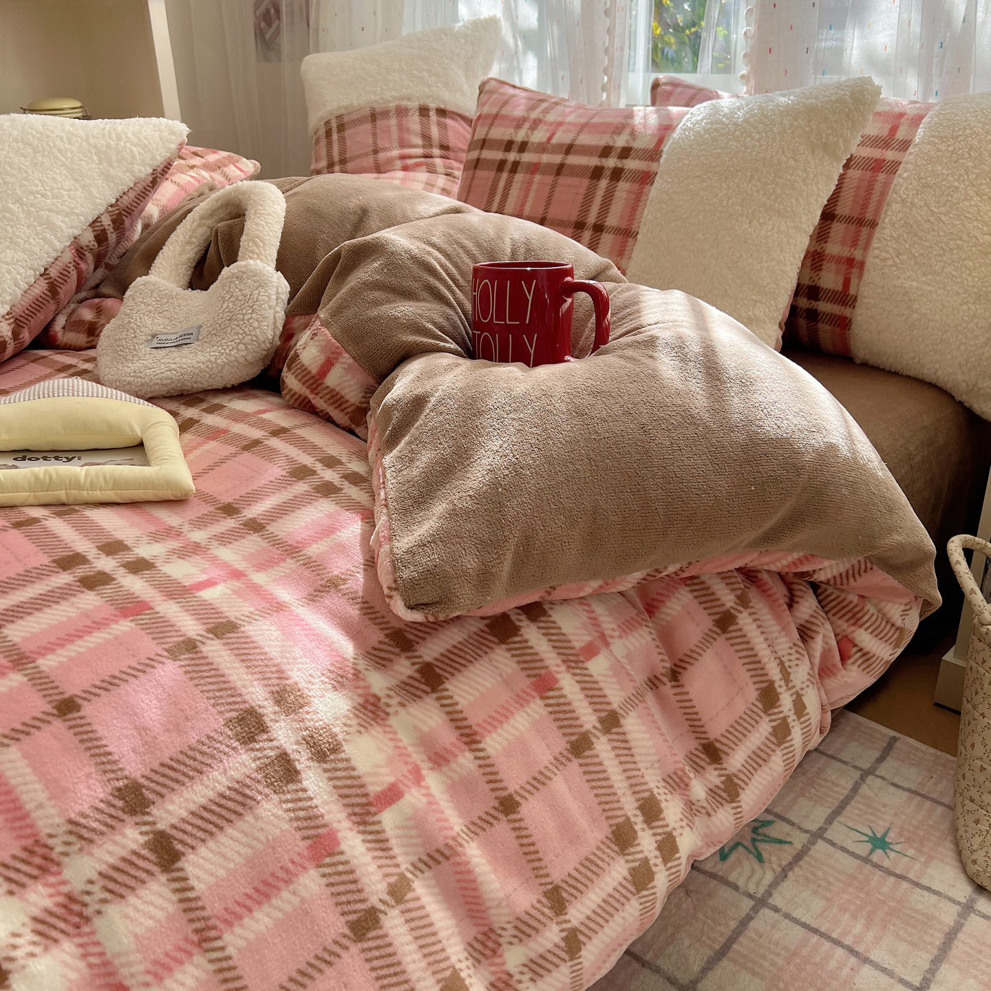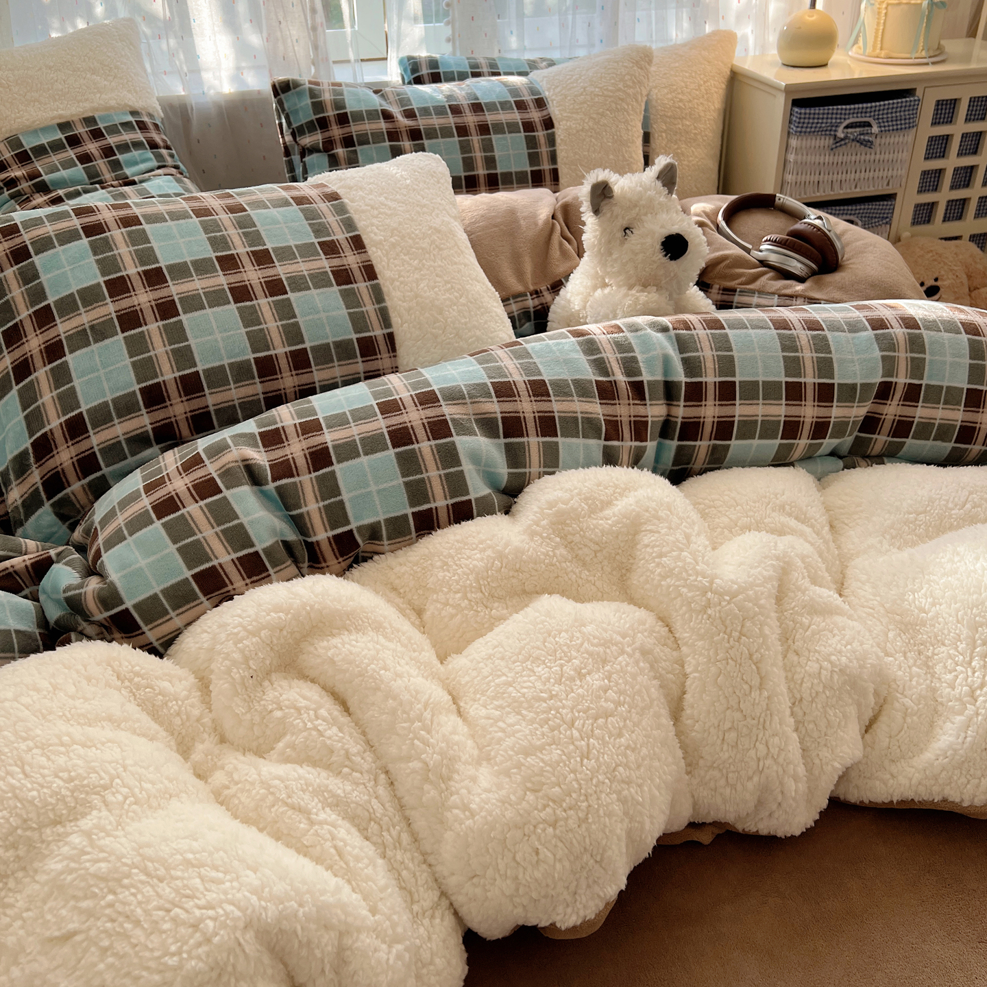 (总)顾里家纺 2025新款复古博主风高克重羊羔毛拼接牛奶绒套件
