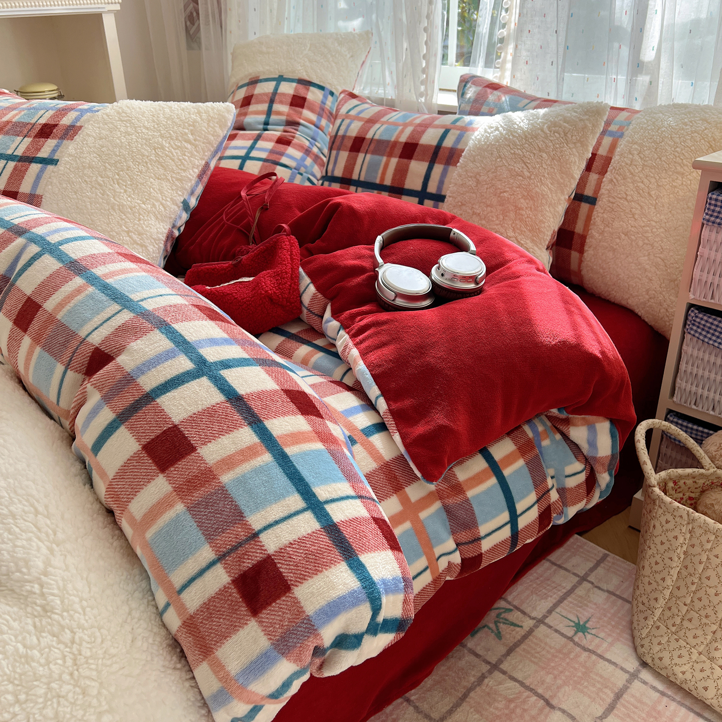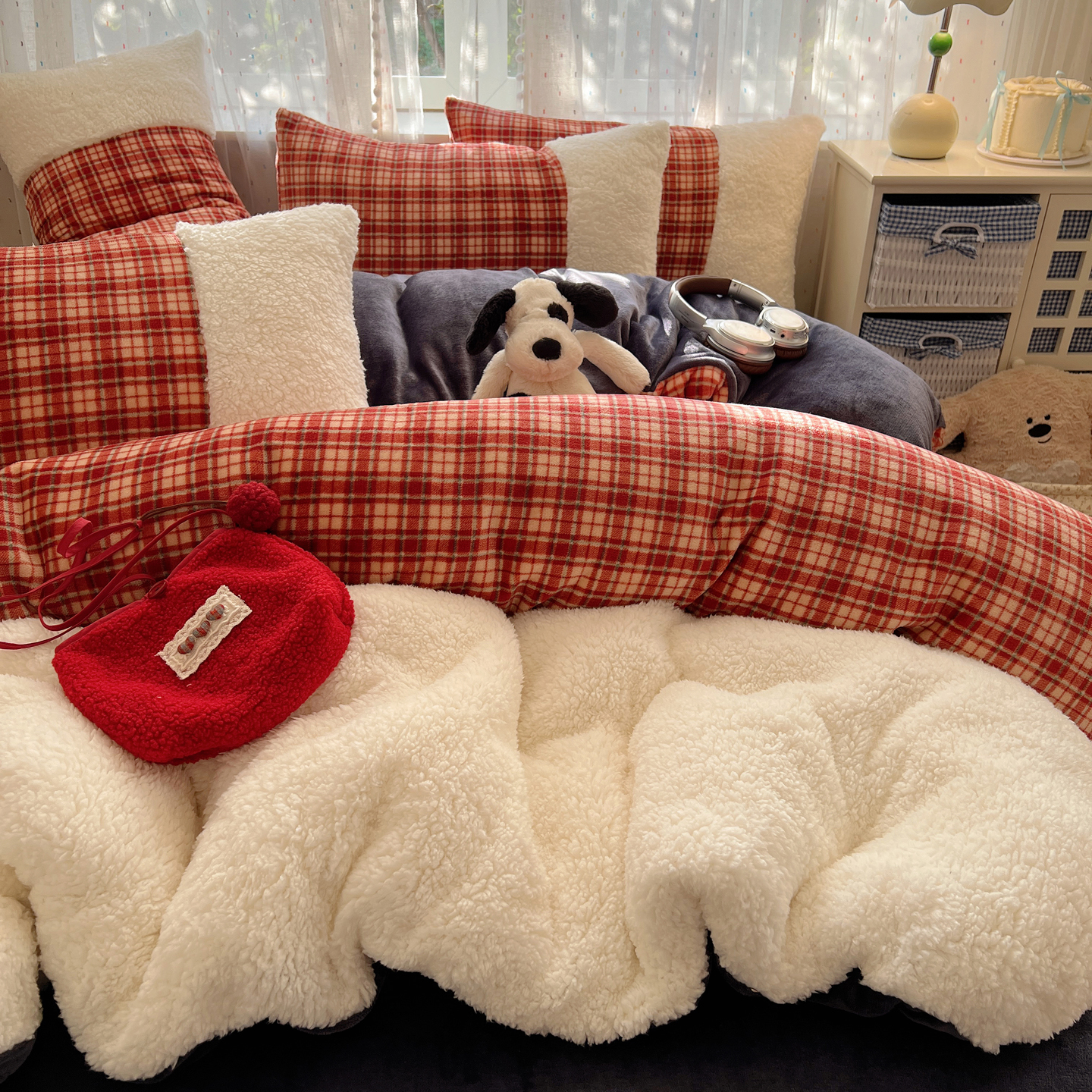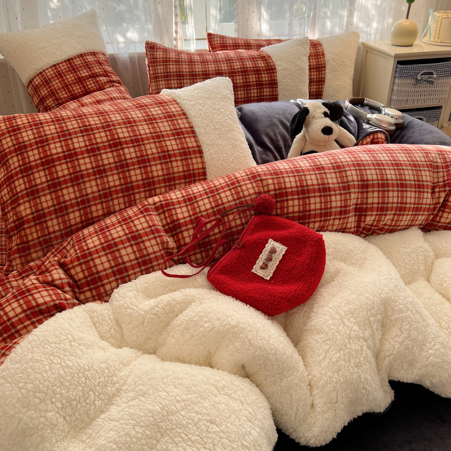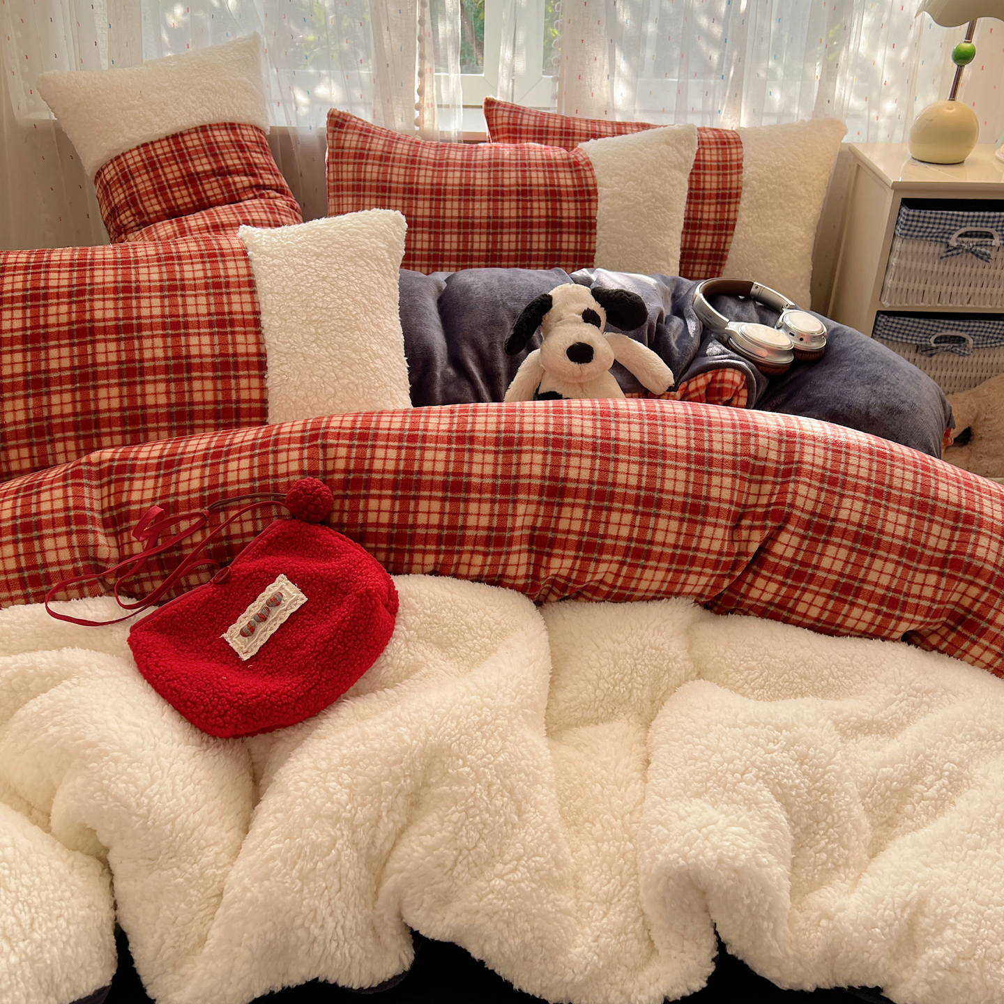 (总)顾里家纺 2025新款复古博主风高克重羊羔毛拼接牛奶绒套件