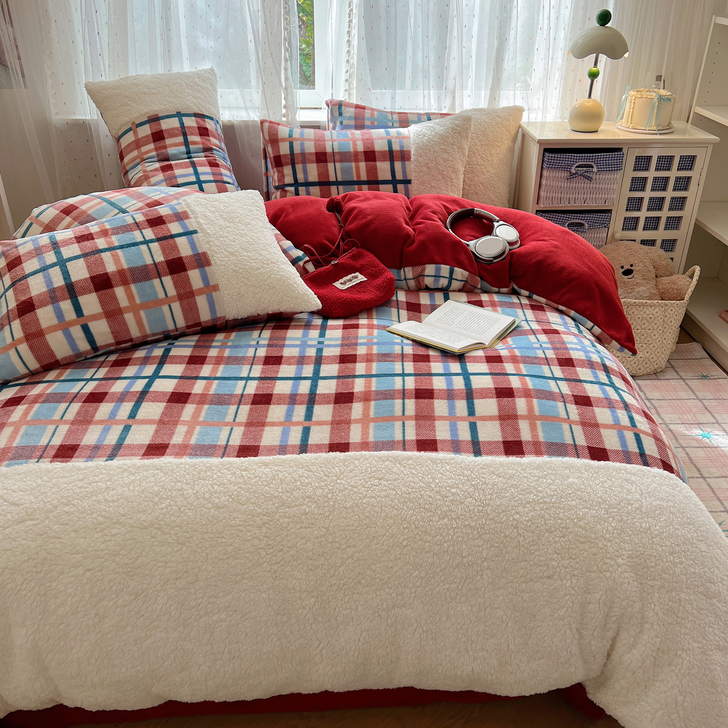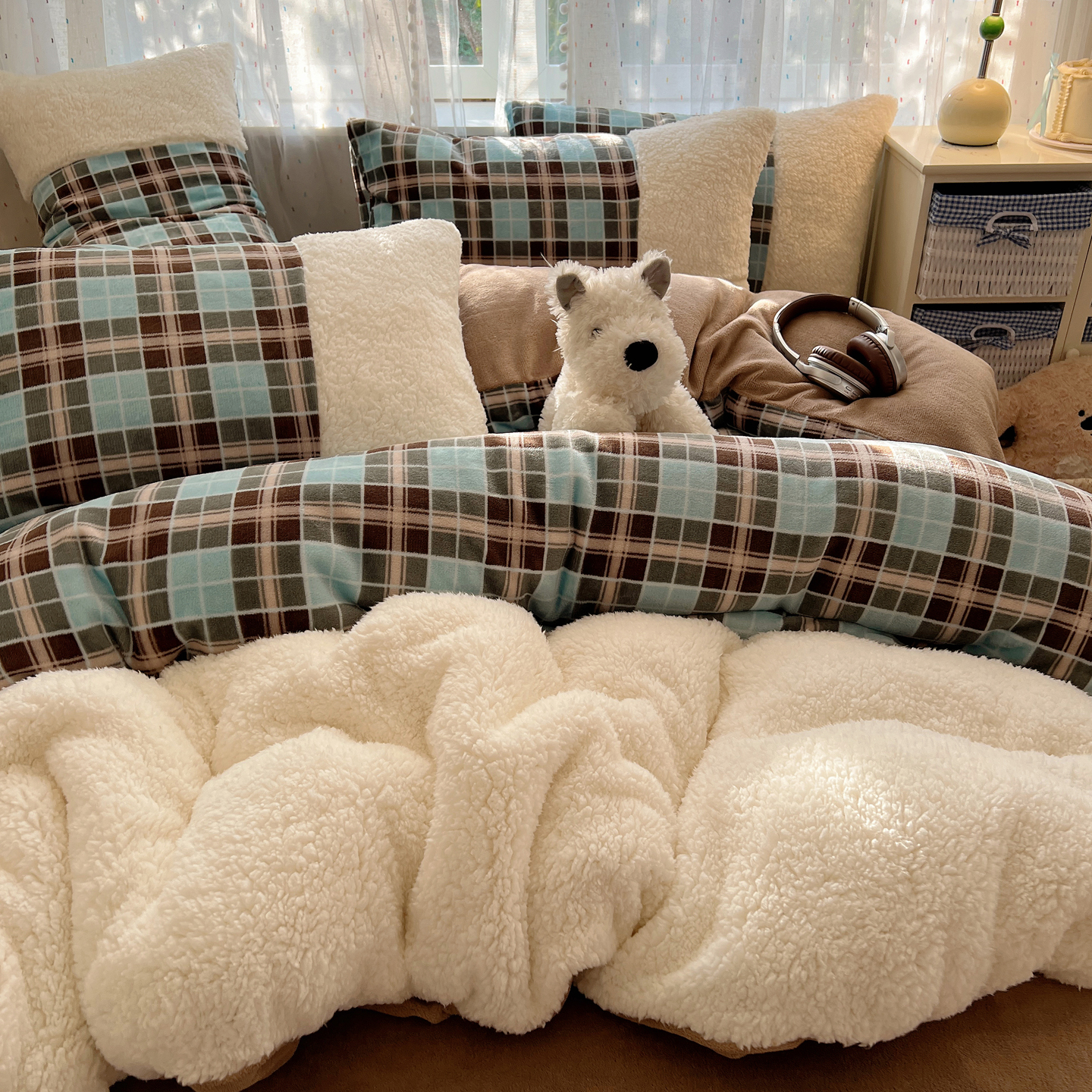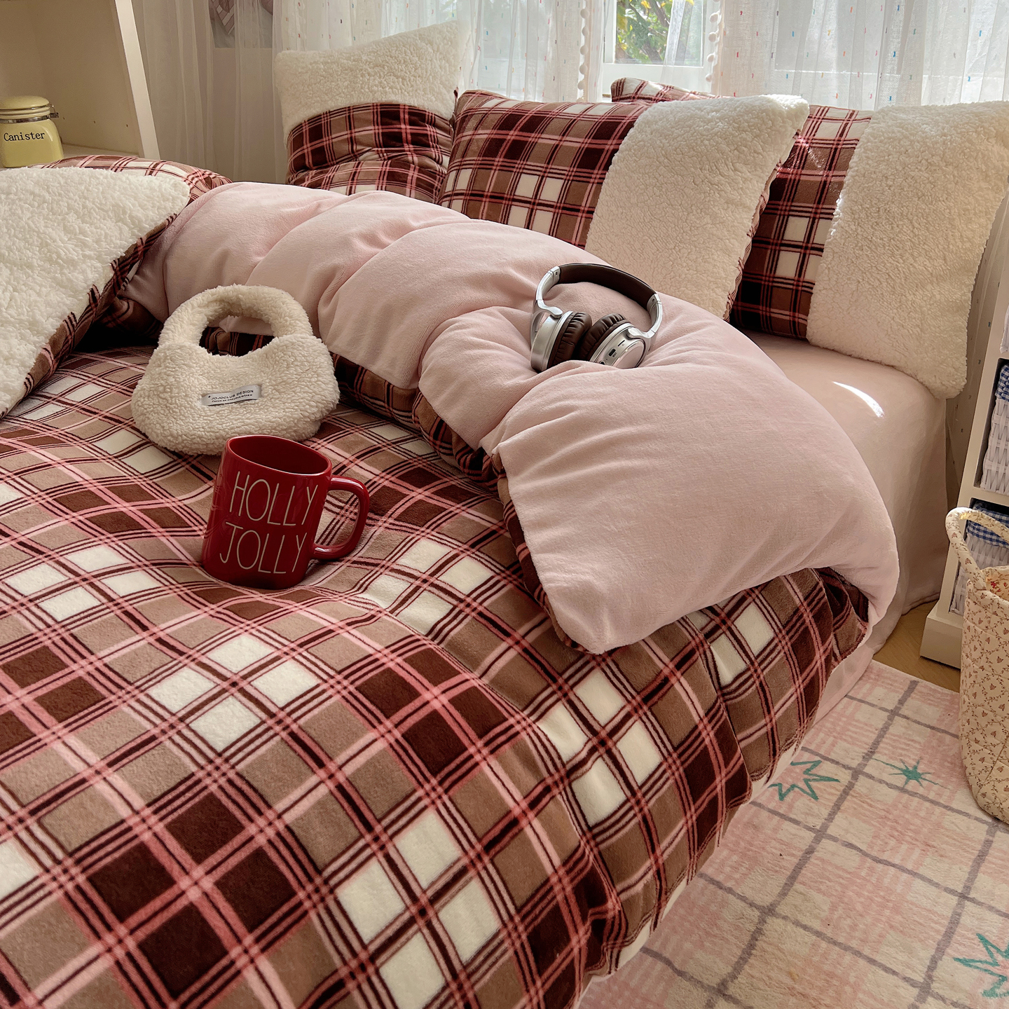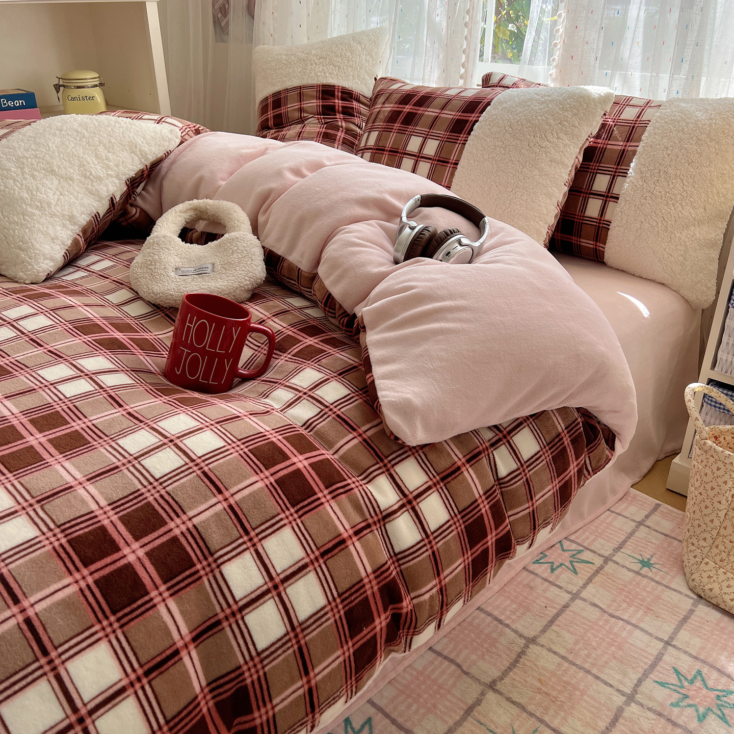 (总)顾里家纺 2025新款复古博主风高克重羊羔毛拼接牛奶绒套件