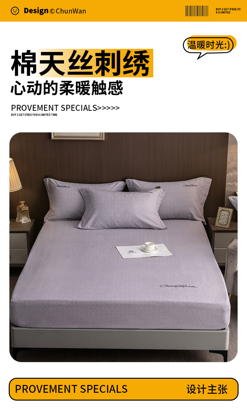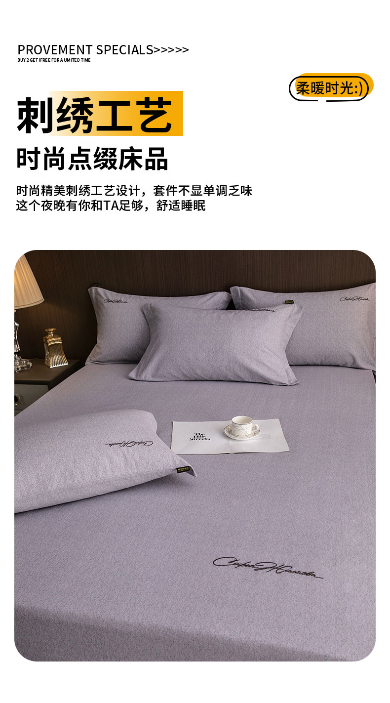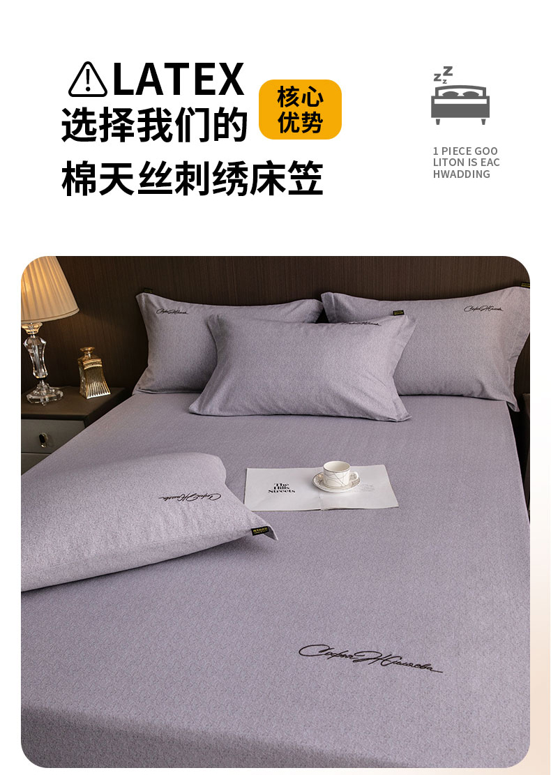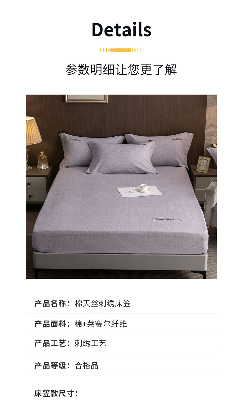 商品名称:春皖家纺 2025新款棉天丝纯色刺绣四件套单品系列-单床笠 钛绮灰