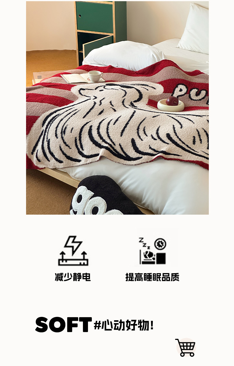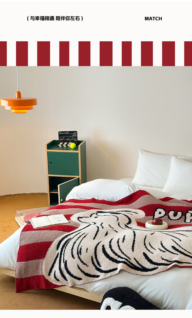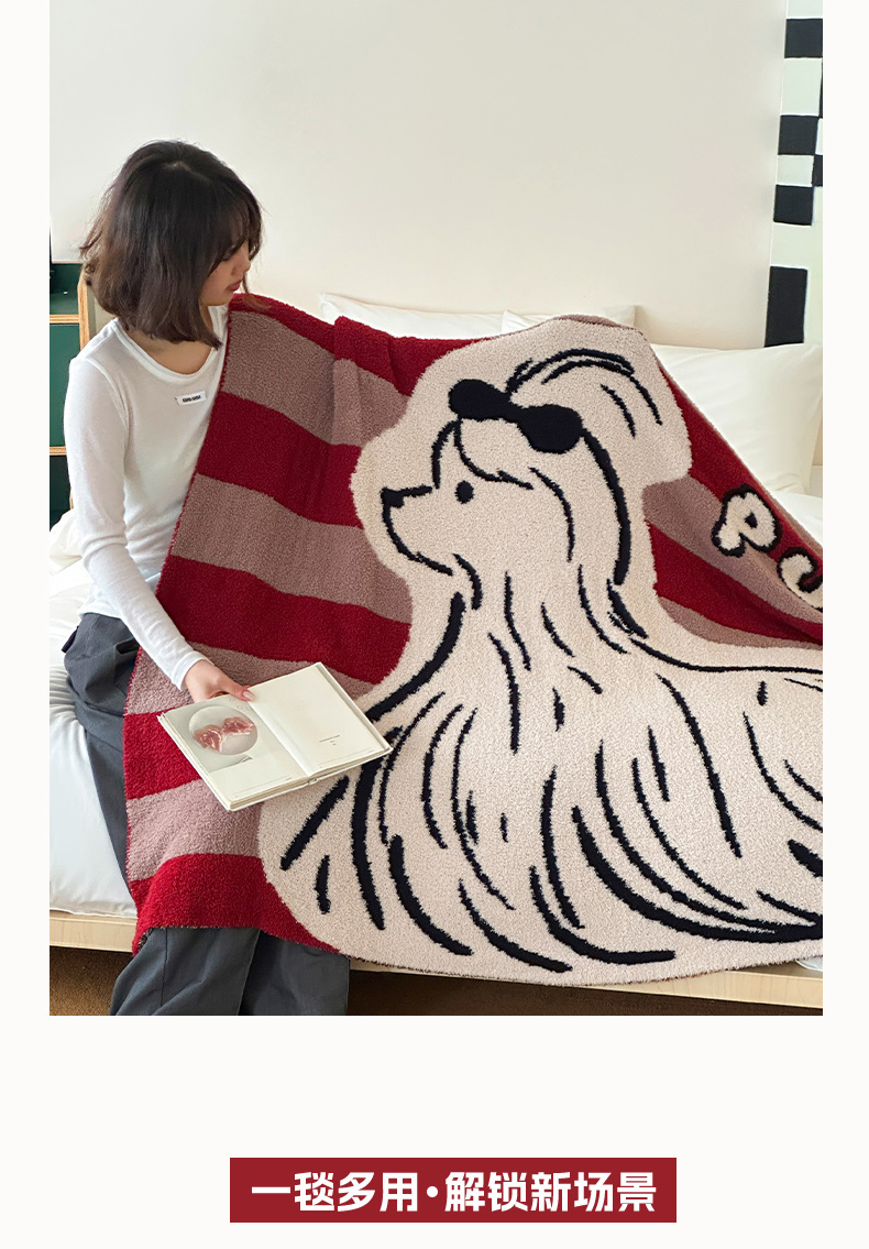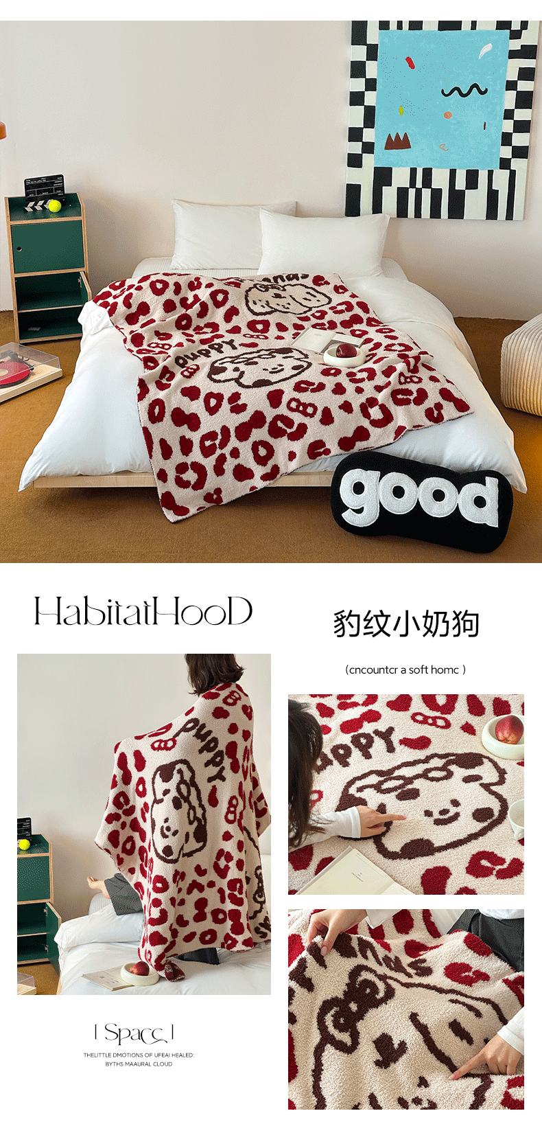 (总)RYB红黄兰 2025新款设计师原创多功能针织半边绒毛毯午休毯盖毯加厚毯子,红咖哈基米,豹纹小奶狗,包装