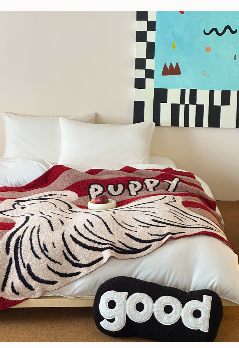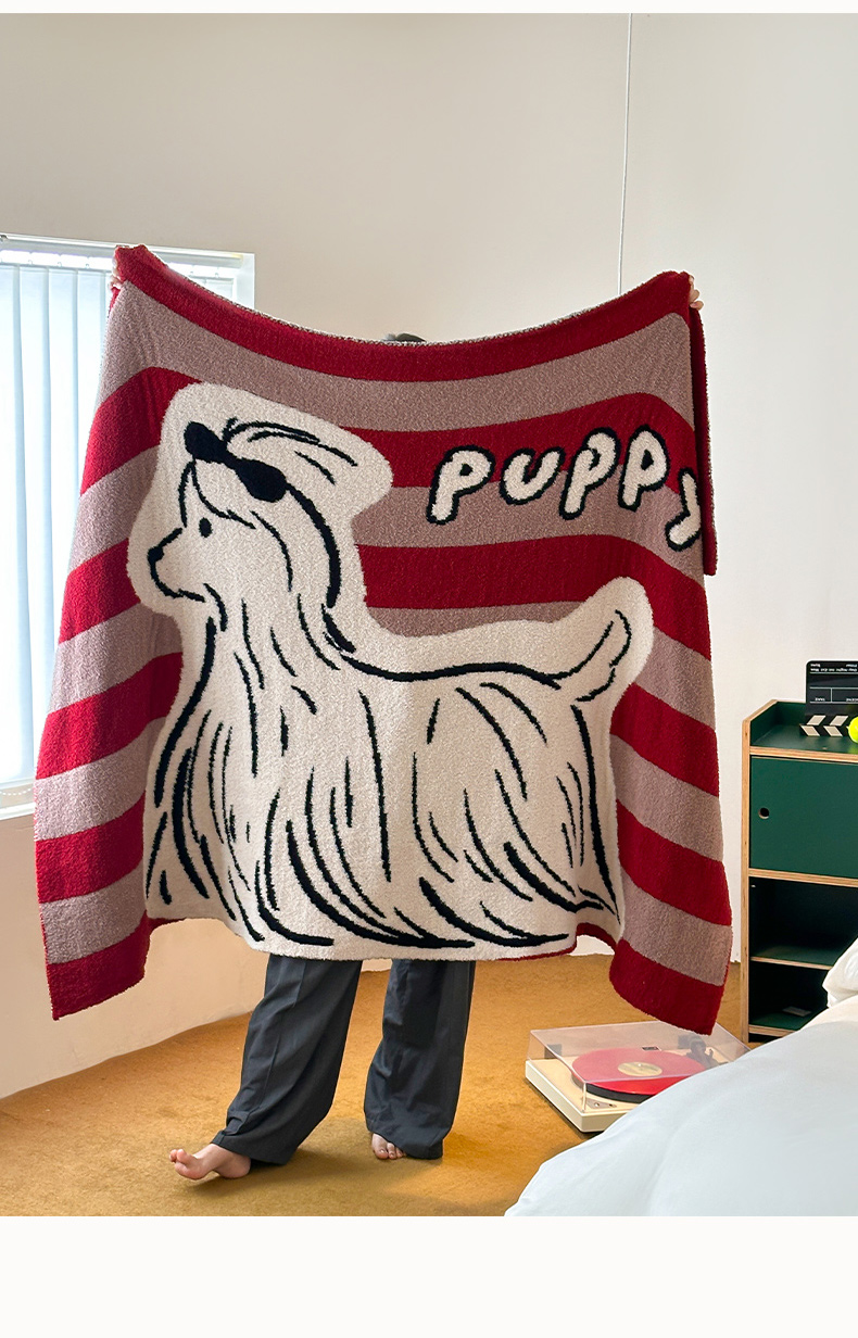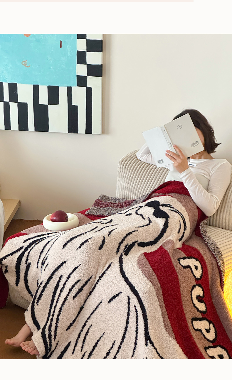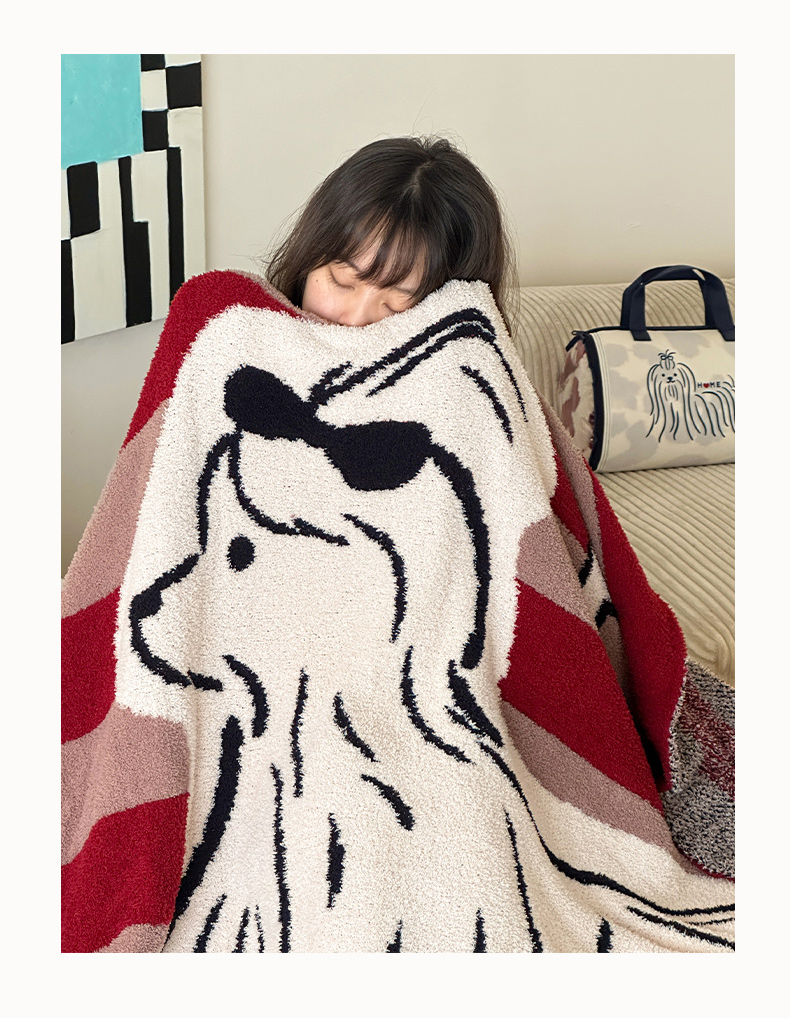 (总)RYB红黄兰 2025新款设计师原创多功能针织半边绒毛毯午休毯盖毯加厚毯子,红咖哈基米,豹纹小奶狗,包装