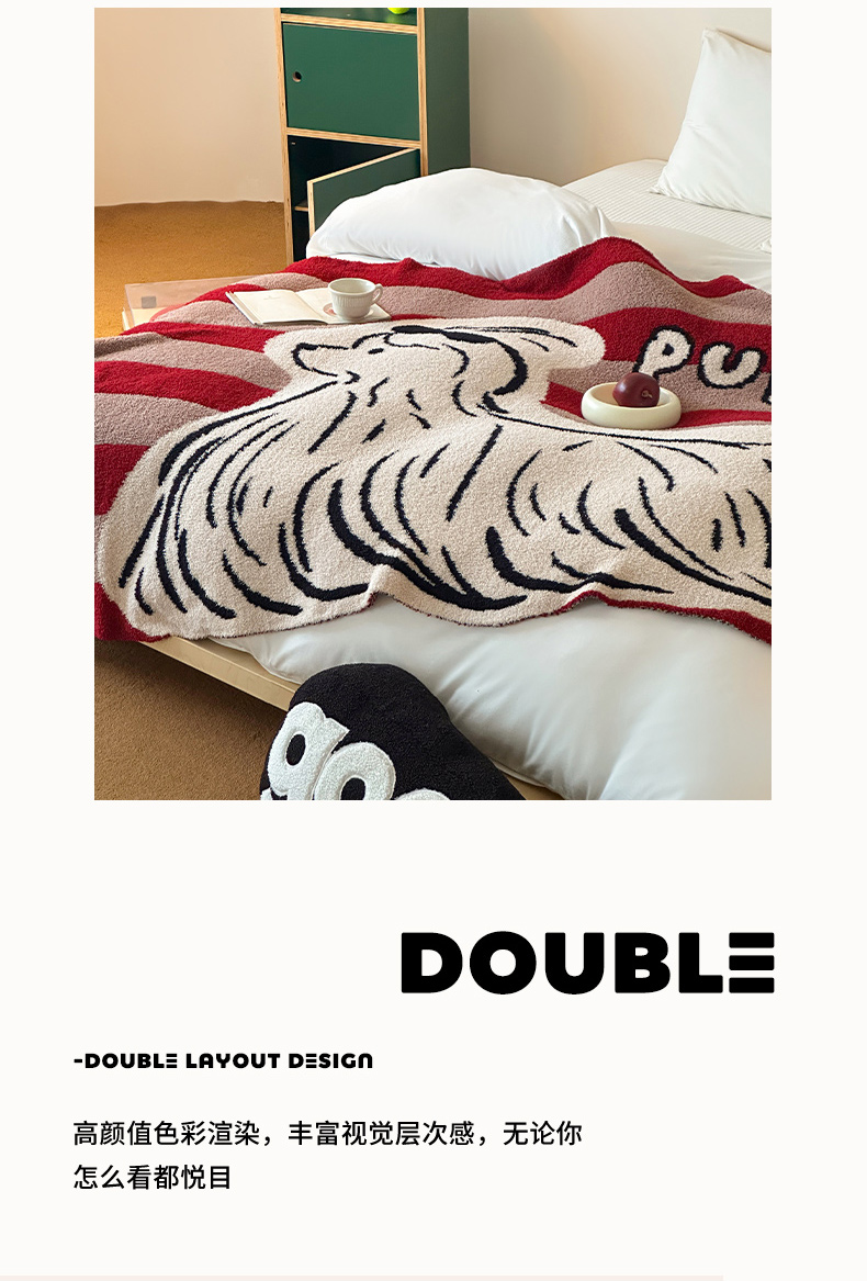 商品名称:RYB红黄兰 2025新款设计师原创多功能针织半边绒毛毯午休毯盖毯加厚毯子 红咖哈基米