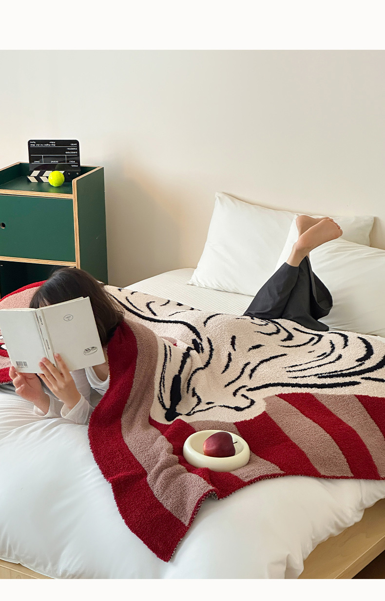 RYB红黄兰 2025新款设计师原创多功能针织半边绒毛毯午休毯盖毯加厚毯子 红咖哈基米