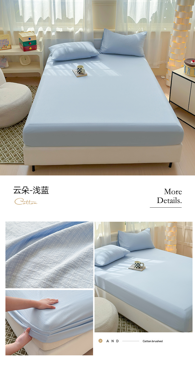 (总)富阿娜家纺 2025新款120克超柔云朵棉双层纱床笠三件套,云朵卡其,云朵深灰,云朵米黄,云朵浅蓝