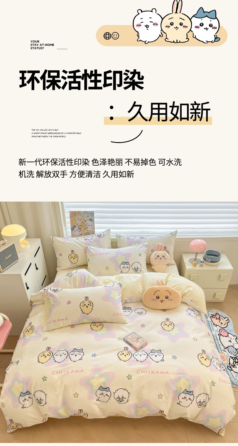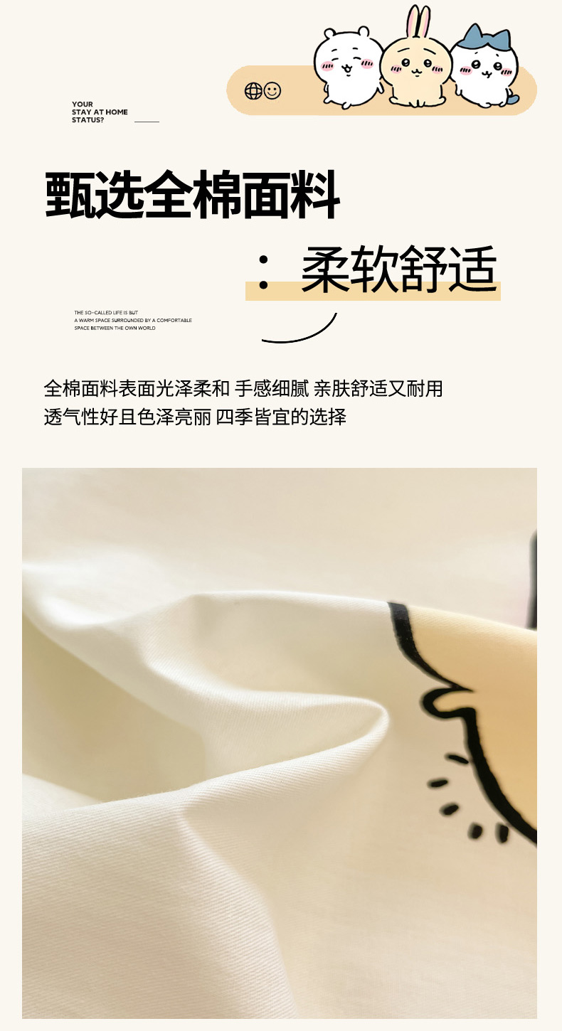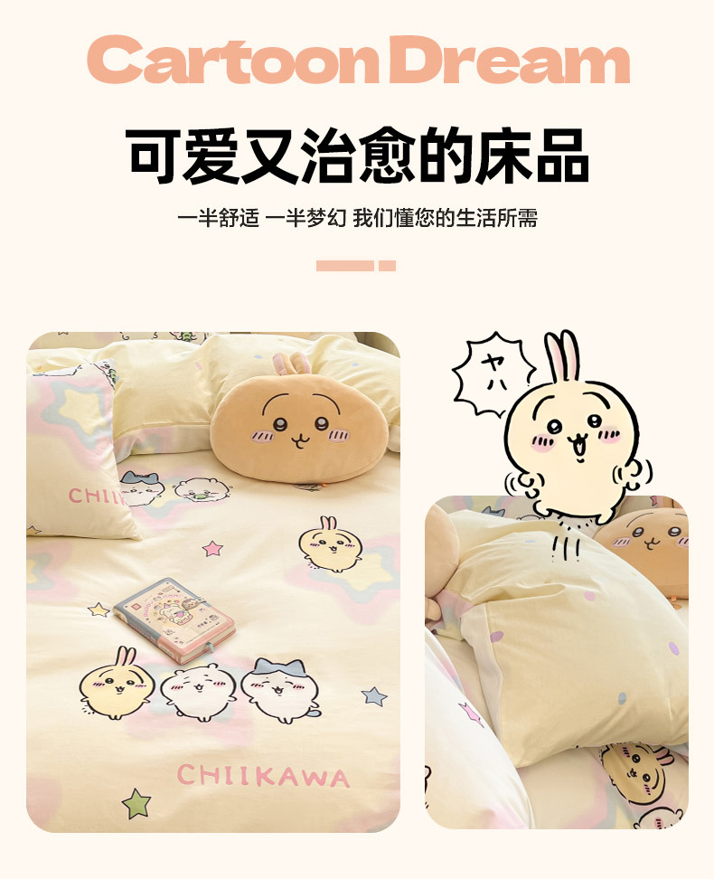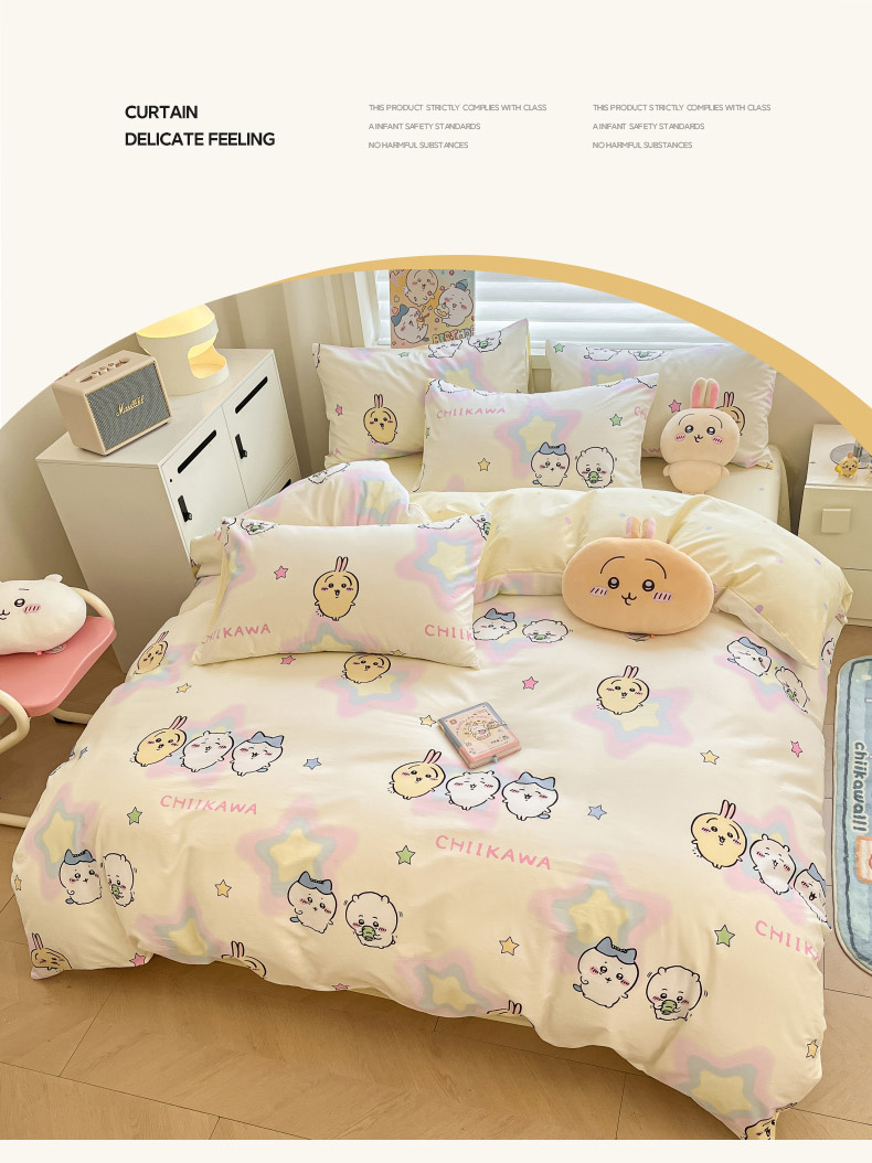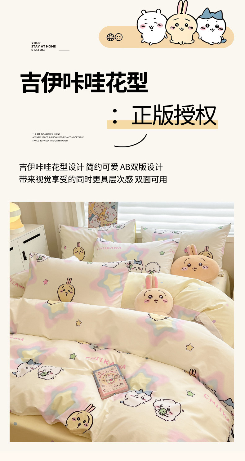 当前位置: 91家纺网 > 商品网购 > 床品套件 > 四件套 > 全棉普通四件套 > 暮思家居 2026新款正版授权吉伊卡哇全棉纯棉四件套 星星吉伊咔哇