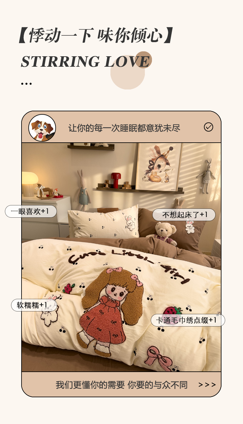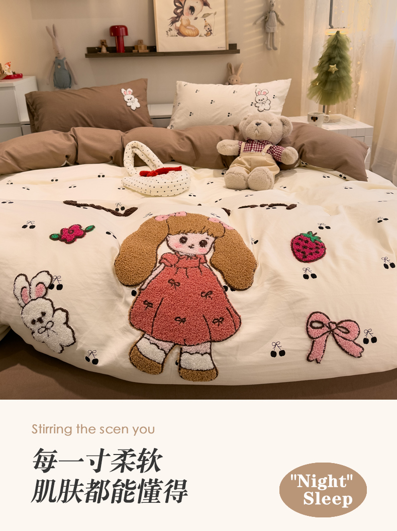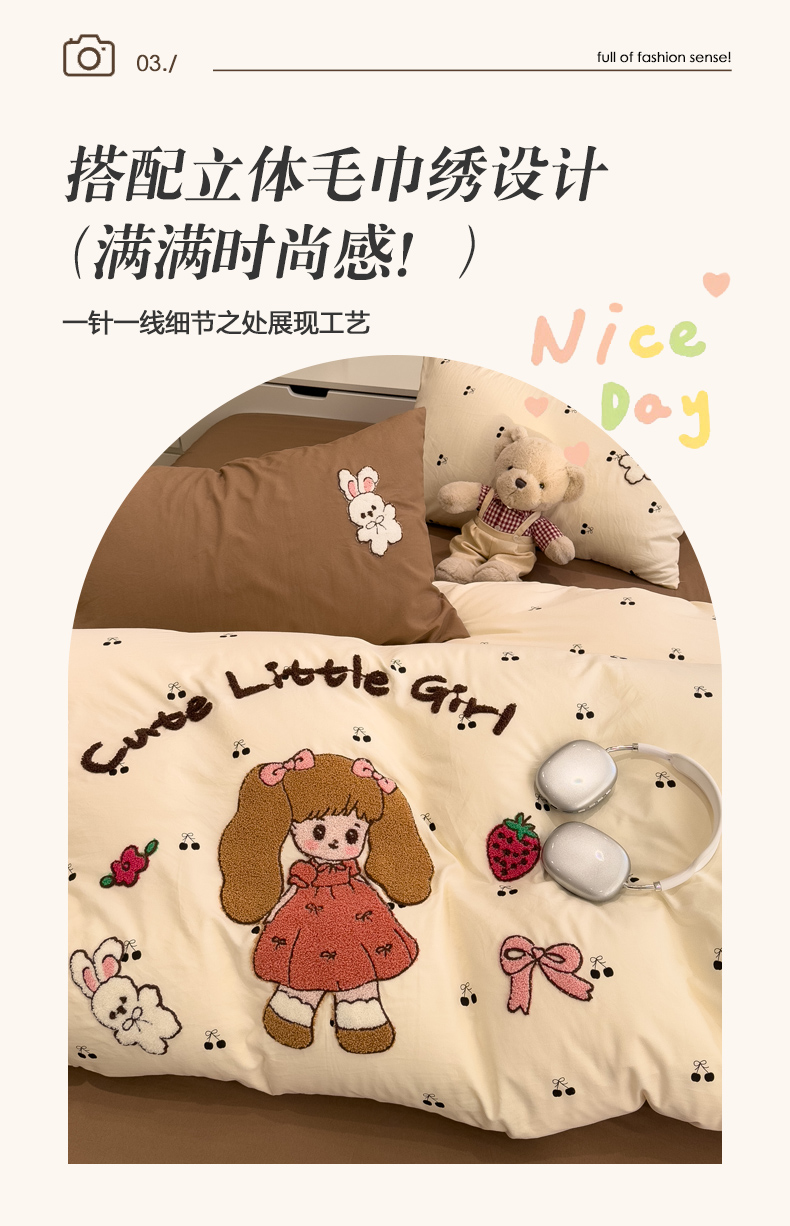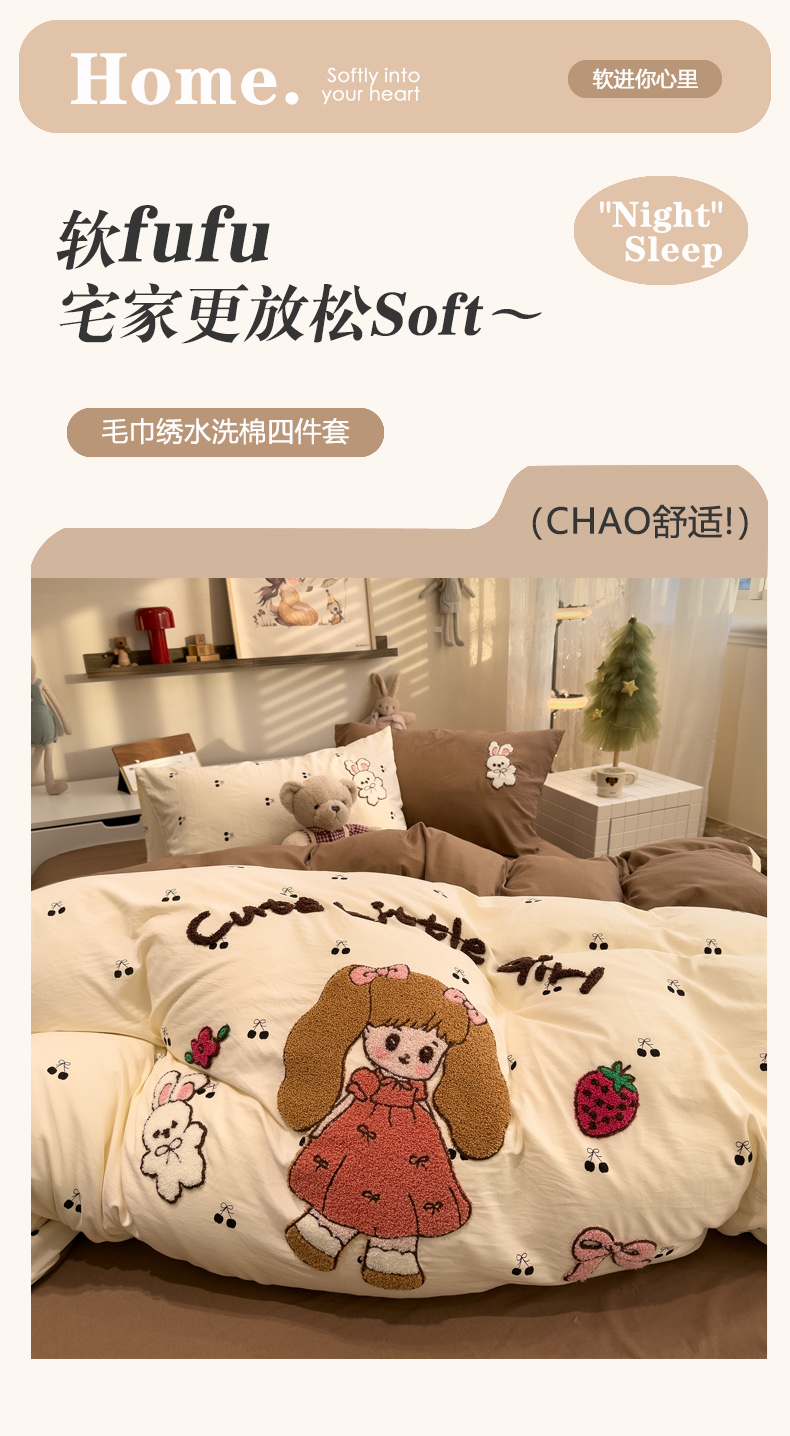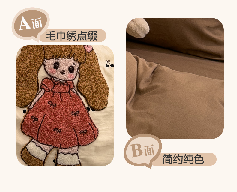 当前位置: 91家纺网 > 商品网购 > 床品套件 > 四件套 > 毛巾绣四件套 > 曼谷家纺 2026新款卡通水洗棉毛巾绣四件套被套 小女孩