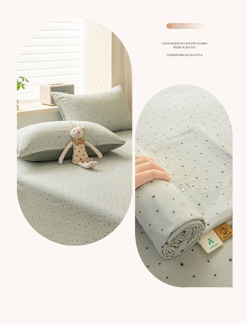 雯雨家纺 2026新款全棉有氧双层纱床单 全棉双层纱床单-星空犬