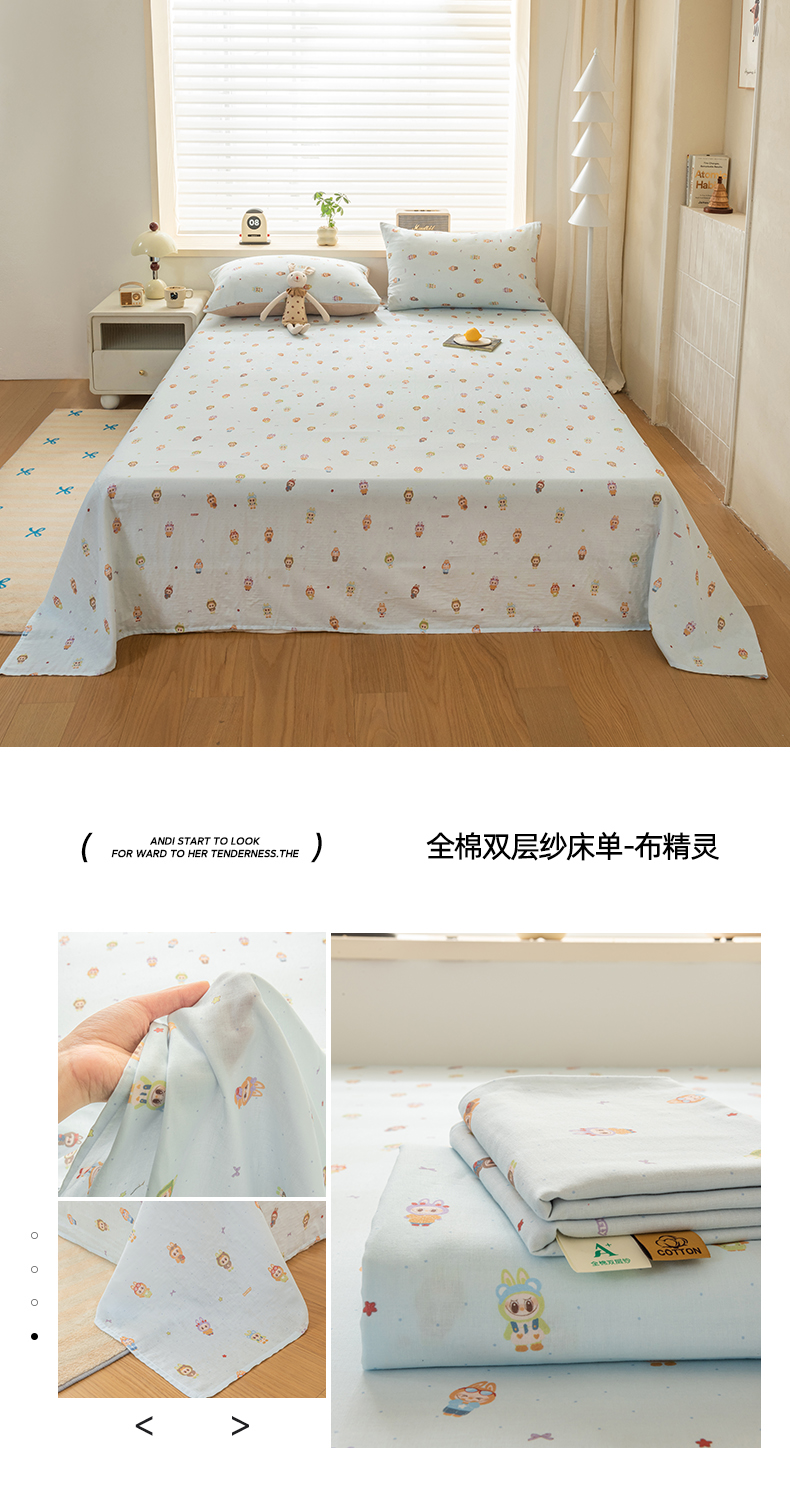 • 91家纺网 家纺一手货源 找家纺 雯雨家纺 2026新款全棉有氧双层纱床单 全棉双层纱床单-星空犬