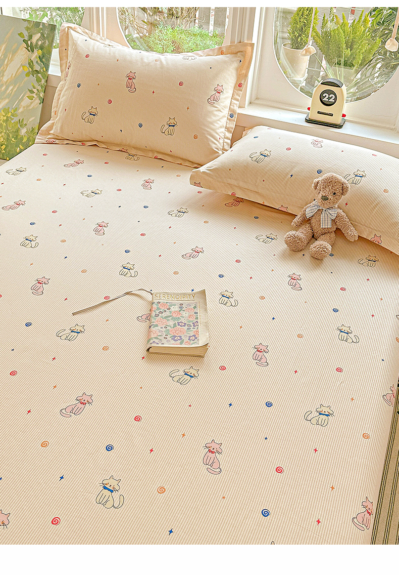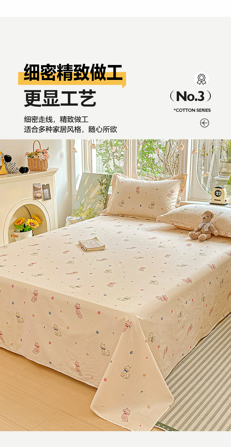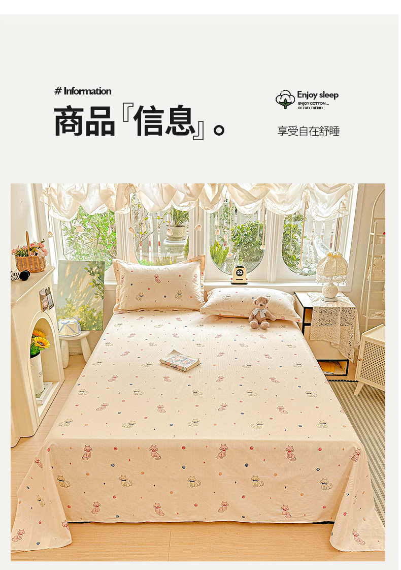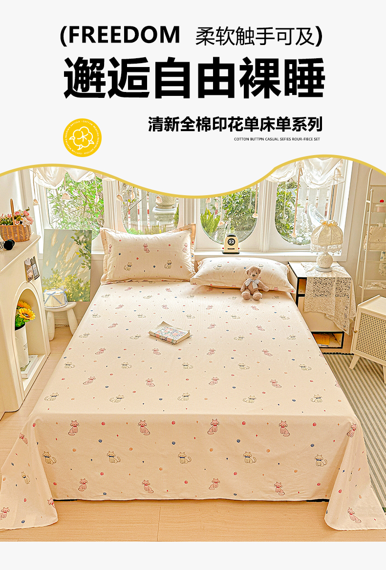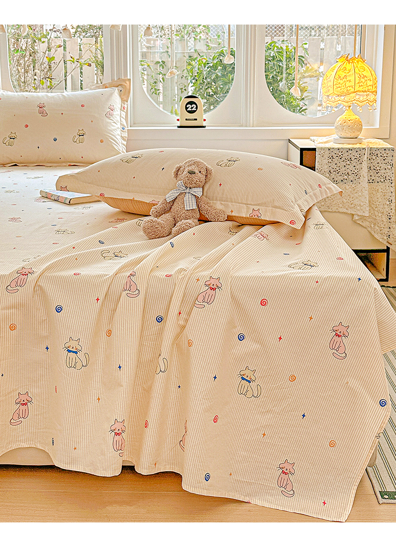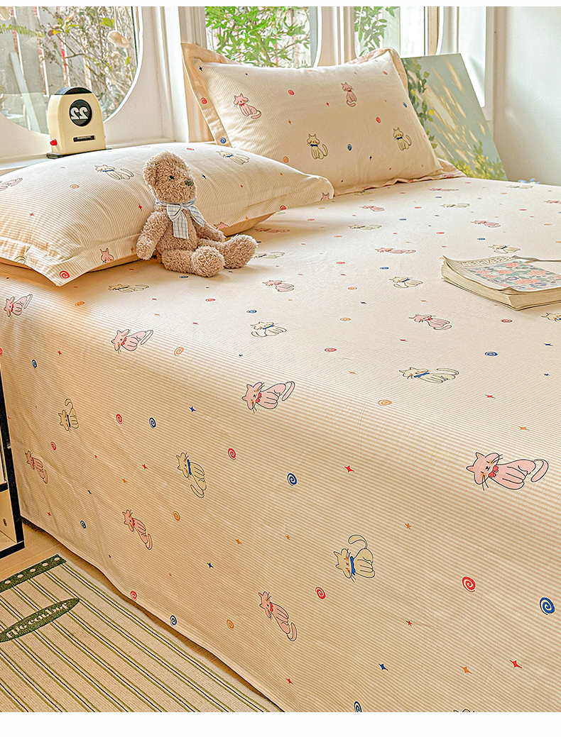 恩泽家纺 2026春夏新款全棉纯棉12868印花四件套及单品系列-单床单床单单件 喵喵