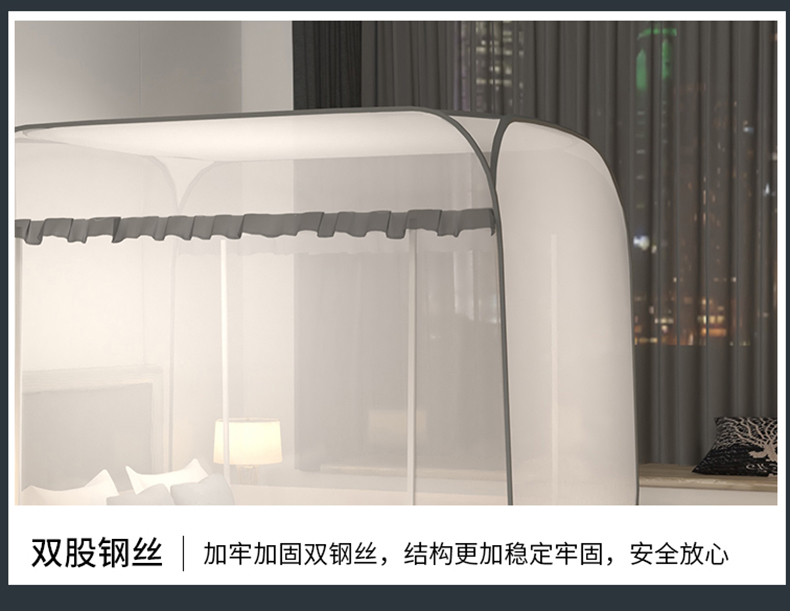商品名称:佳梦家纺 2026新款双开门全底花边蚊帐 花边条纹-灰