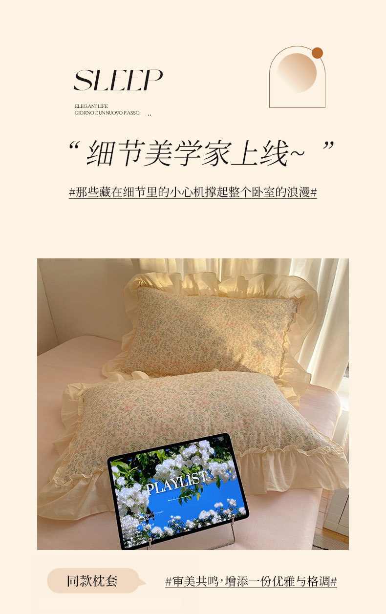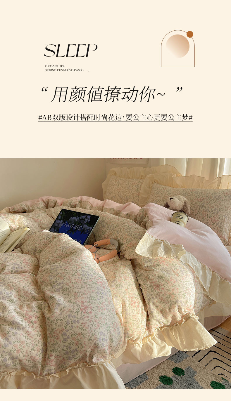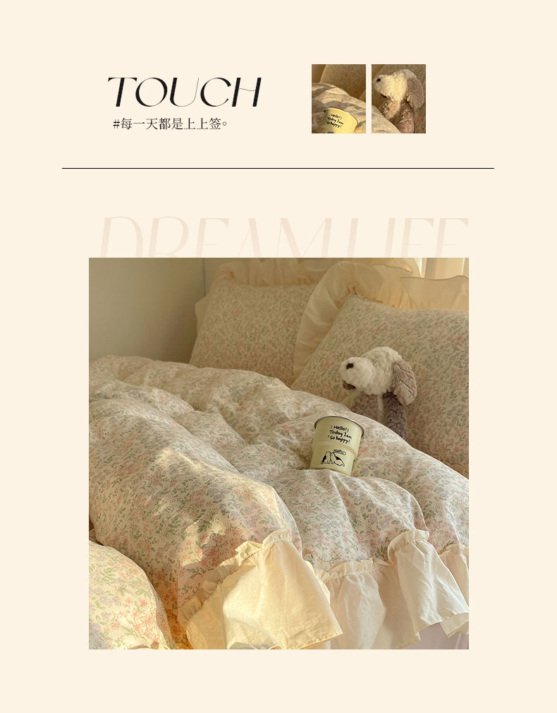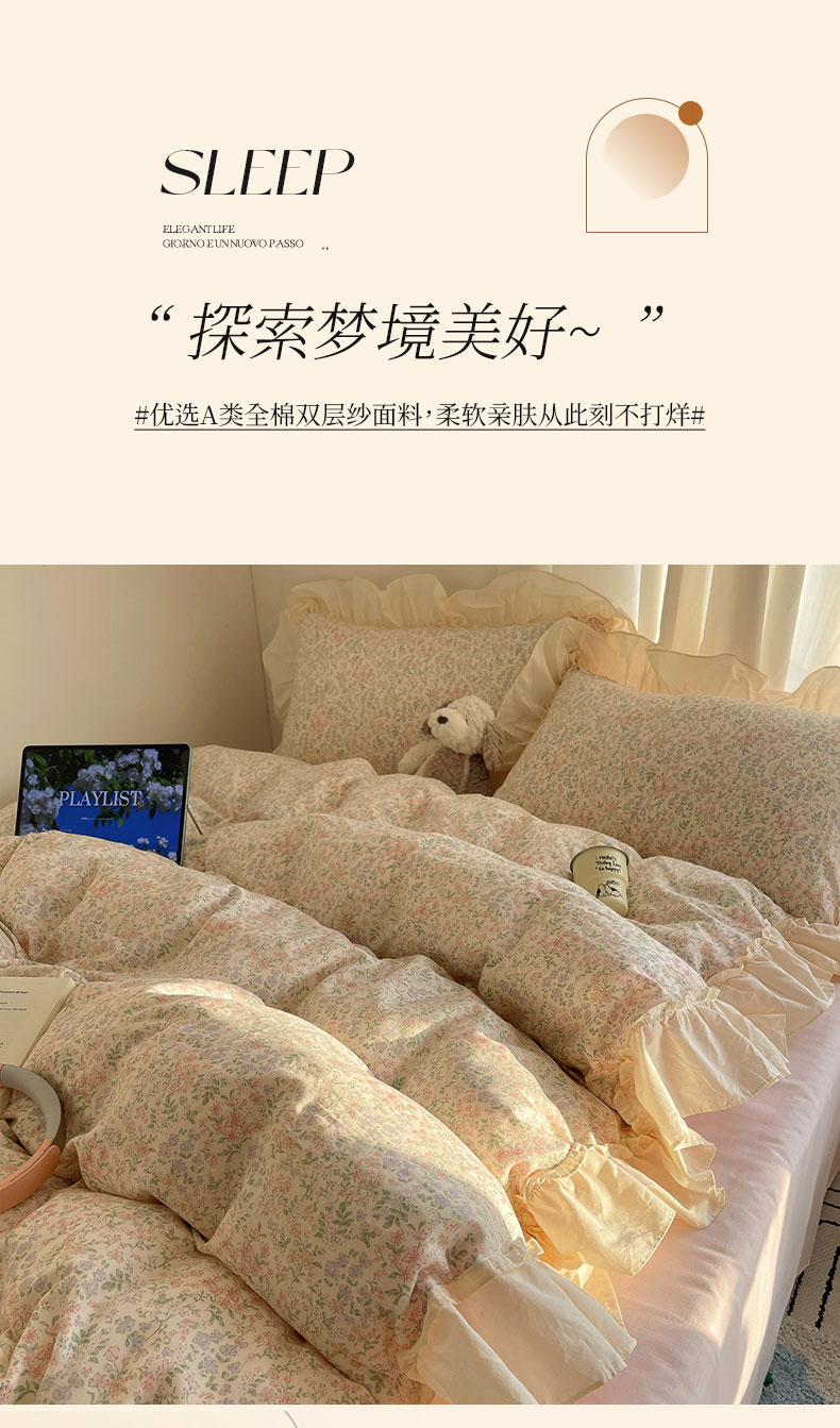 当前位置: 91家纺网 > 商品网购 > 床品套件 > 四件套 > 全棉普通四件套 > 六巷胡同 2026新款韩系博主风花边款小碎花全棉双层纱四件套 双层纱-春不晚町