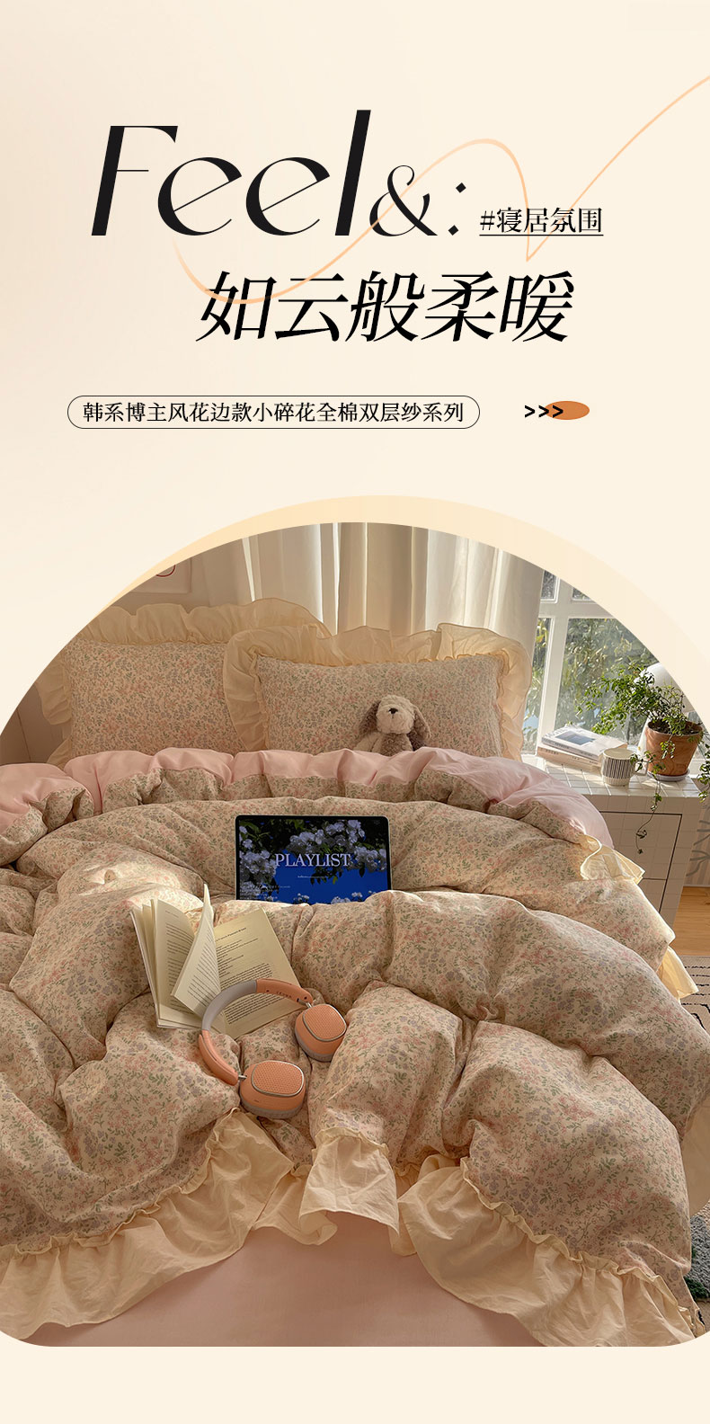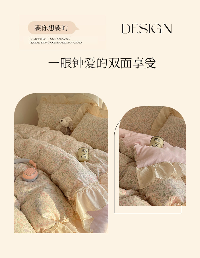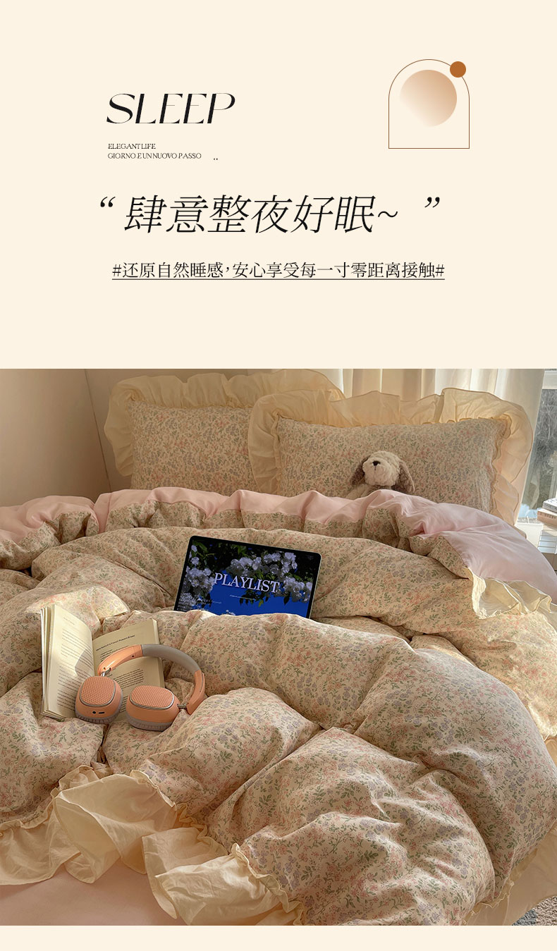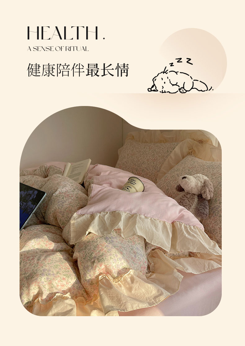 当前位置: 91家纺网 > 商品网购 > 床品套件 > 四件套 > 全棉普通四件套 > 六巷胡同 2026新款韩系博主风花边款小碎花全棉双层纱四件套 双层纱-春不晚町