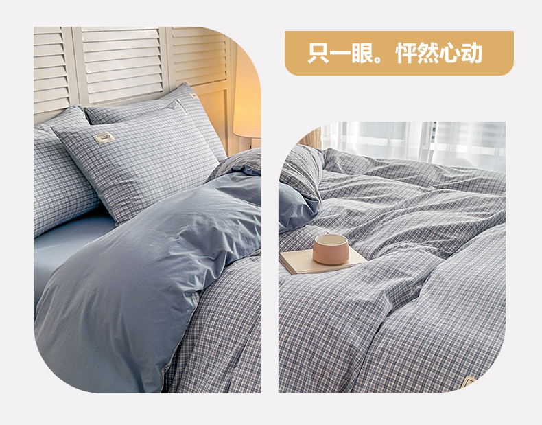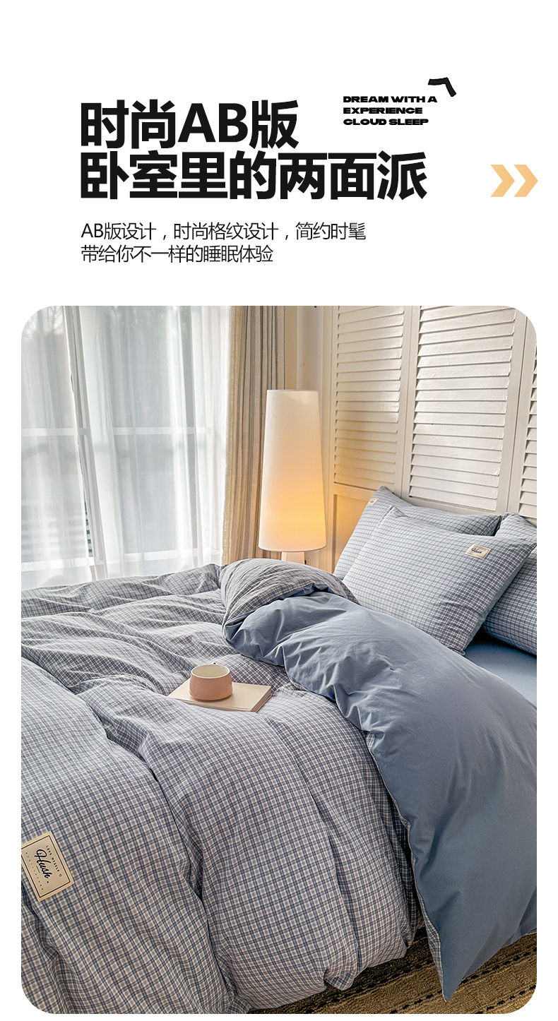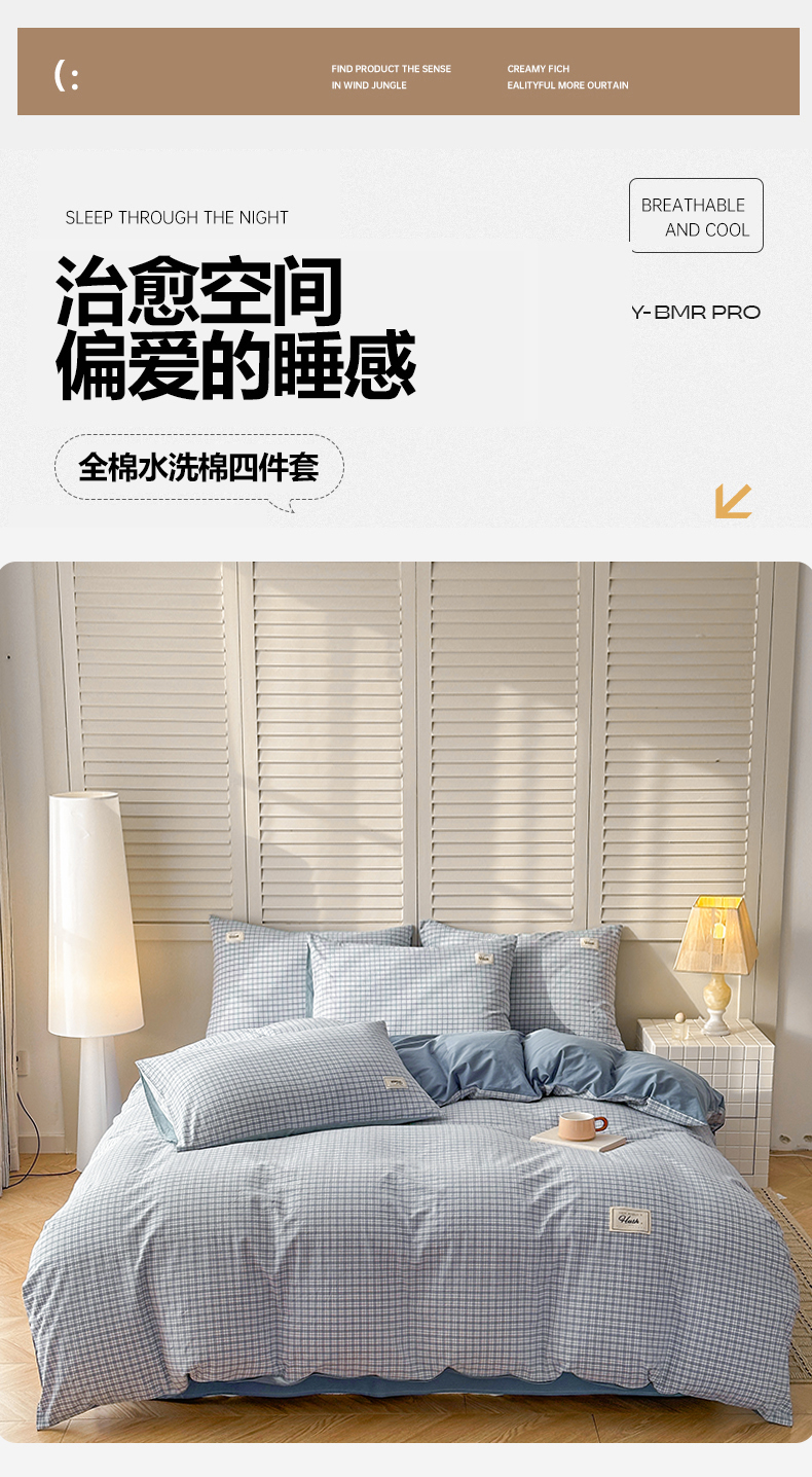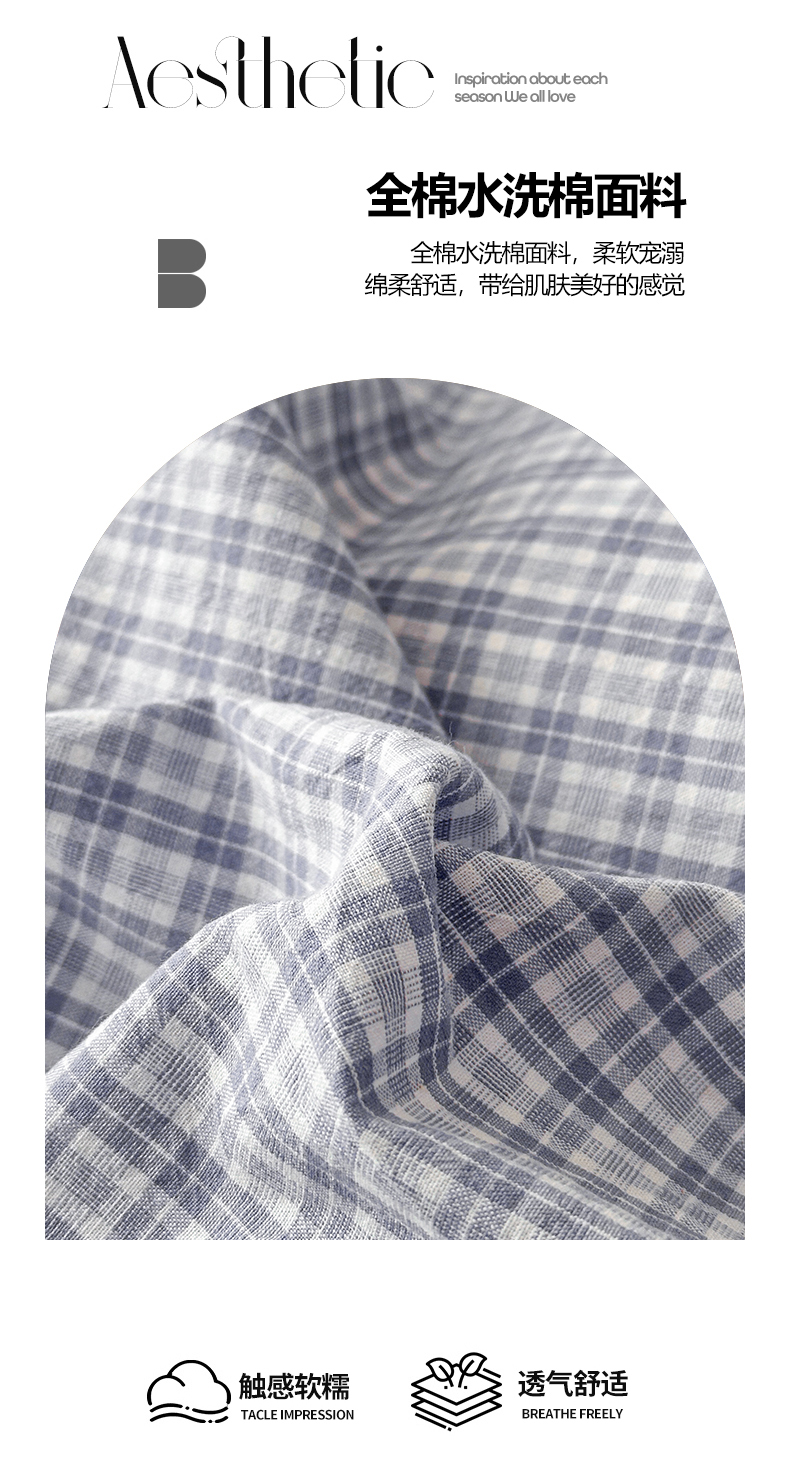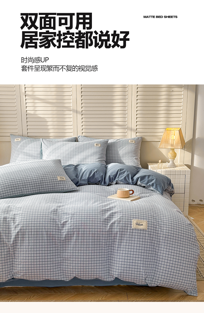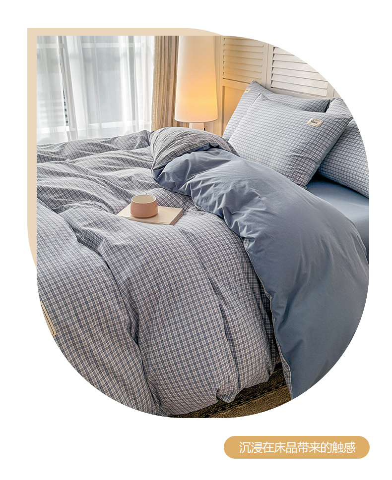 当前位置: 91家纺网 > 商品网购 > 床品套件 > 四件套 > 全棉普通四件套 > 木子家纺 2026春夏新款色织全棉纯棉四件套 莫里-蓝