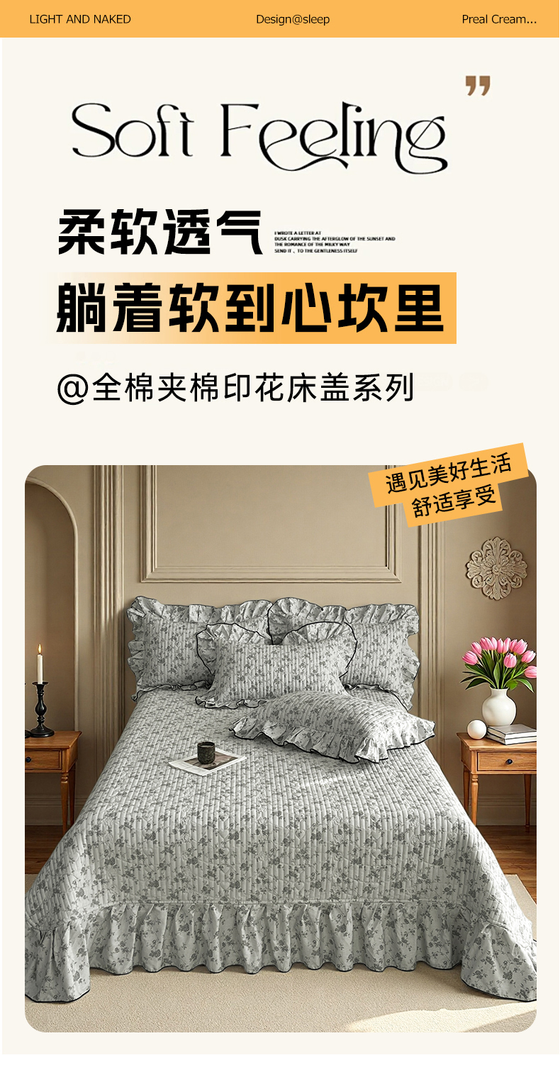 (总)宜凡家纺 2026新款全棉夹棉印花床盖款三件套,安洛特 灰,安洛特 米,安冉之夏,半岛玫瑰,繁花锦年,芳伊娜,莫里,紫藤花