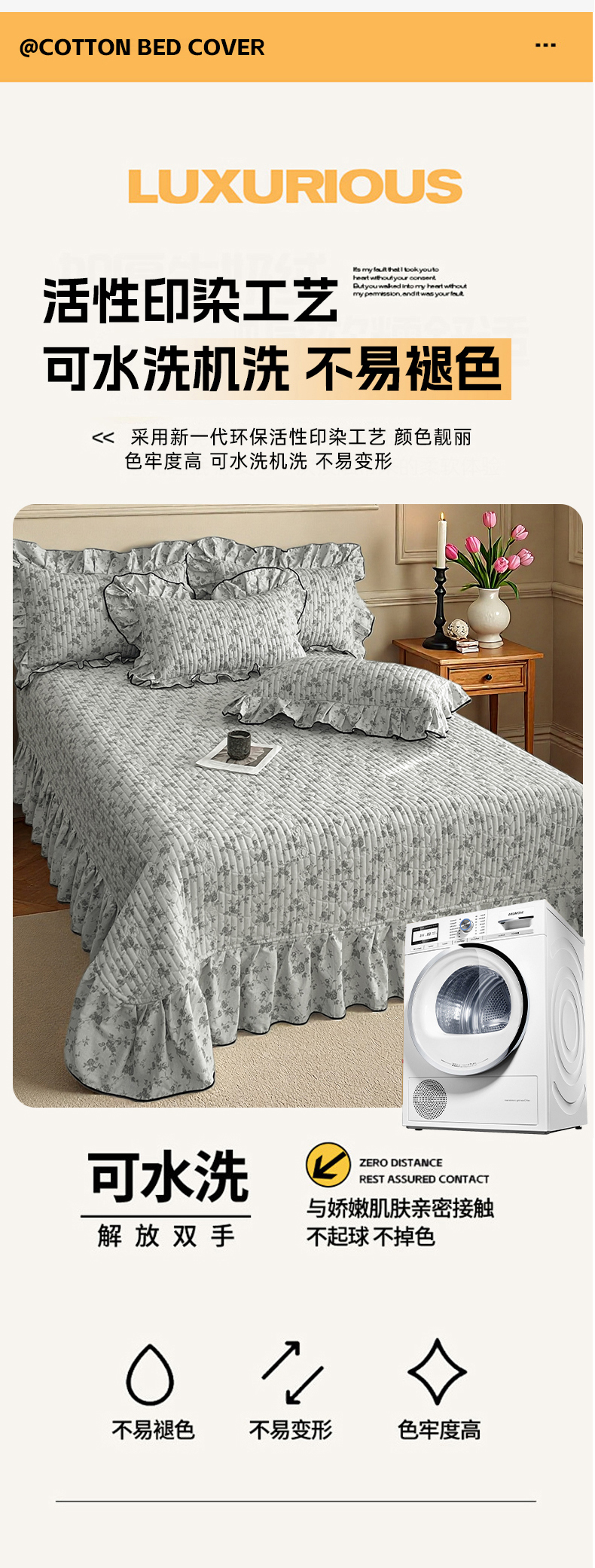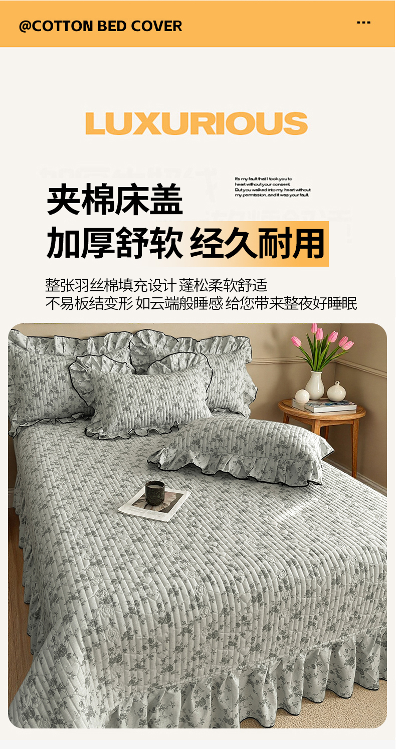 宜凡家纺 2026新款全棉夹棉印花床盖款三件套 莫里