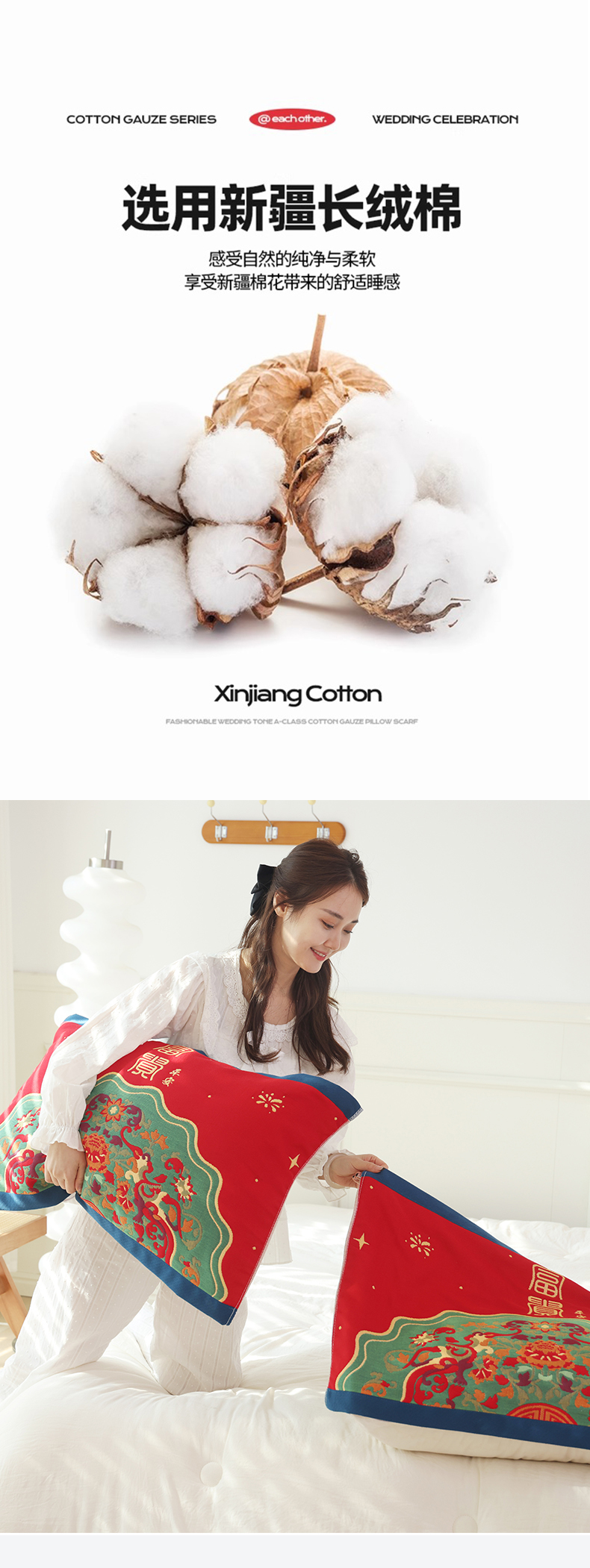 当前位置: 91家纺网 > 商品网购 > 床上用品 > 枕巾垫巾 > 朴尔家纺-毛巾被 2026新款全棉纯棉加厚八层纱布喜庆民族风婚庆系列枕巾单枕巾枕巾单件 平安喜乐