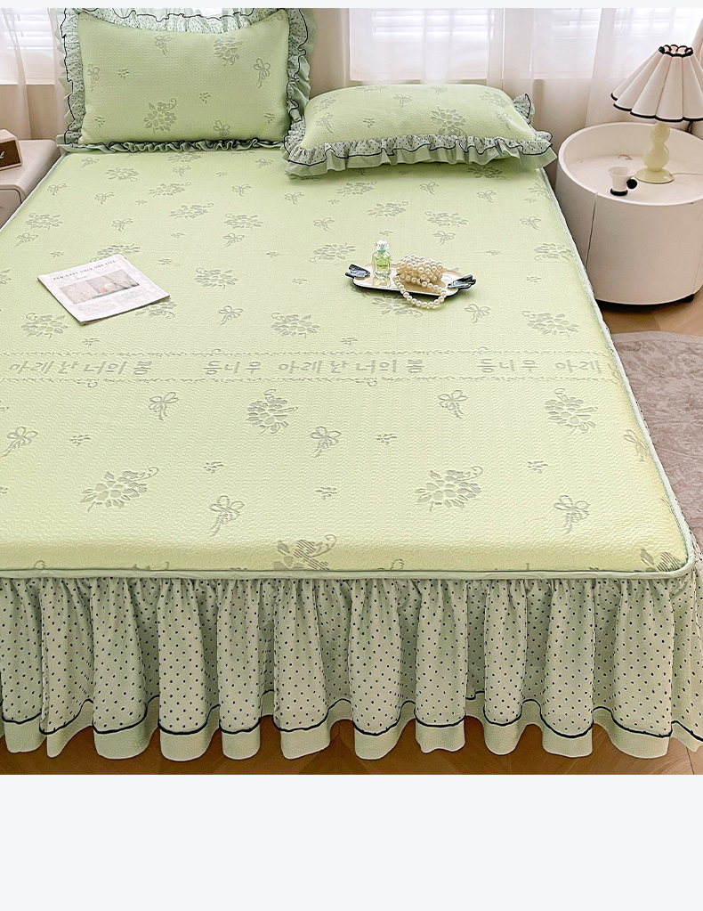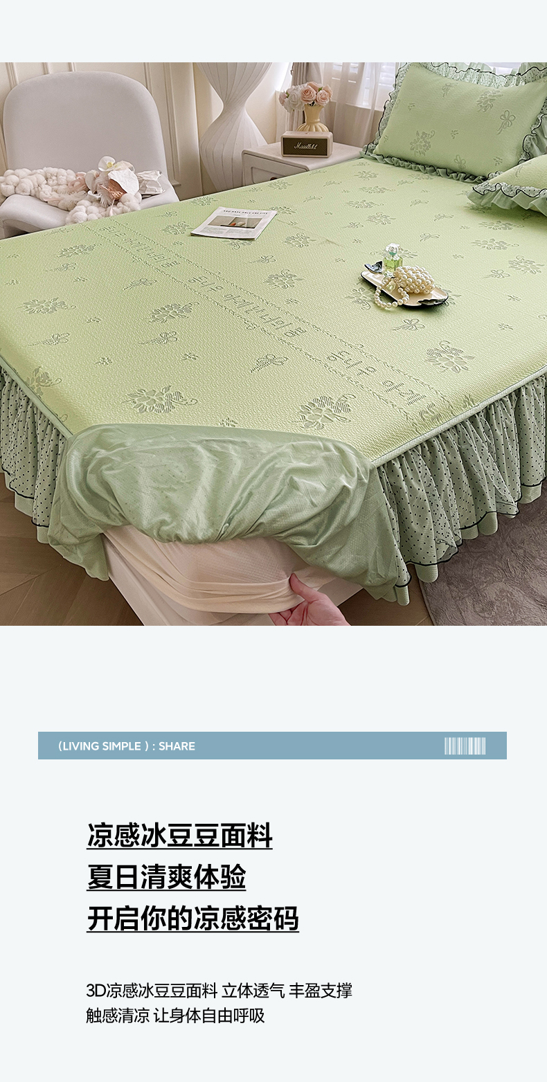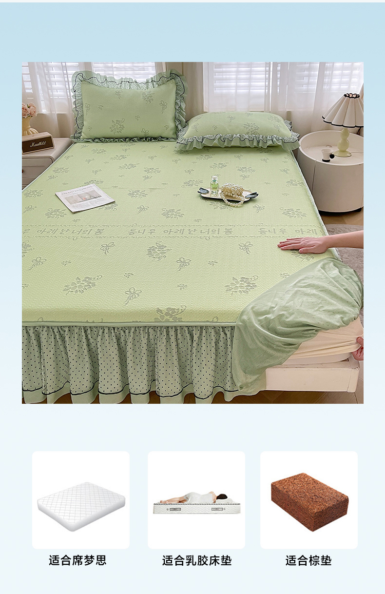 当前位置: 91家纺网 > 商品网购 > 床上用品 > 凉席 > 其他凉席 > 眠势力 2026新款冰豆豆床裙款床笠夏天冰凉豆豆空调席子带花边床裙床笠二合一 韩系小花-清绿