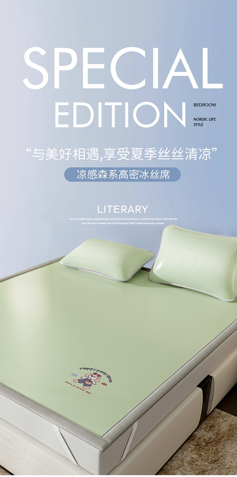 当前位置: 91家纺网 > 商品网购 > 床上用品 > 凉席 > 凉席套件 > 家品罗兰 2026新款夏季A类碳光凉席三明治透气网冰丝凉席家用双人冰丝席床单可机洗单人学生宿舍上下铺夏天空调软席三件套 冰爽-绿