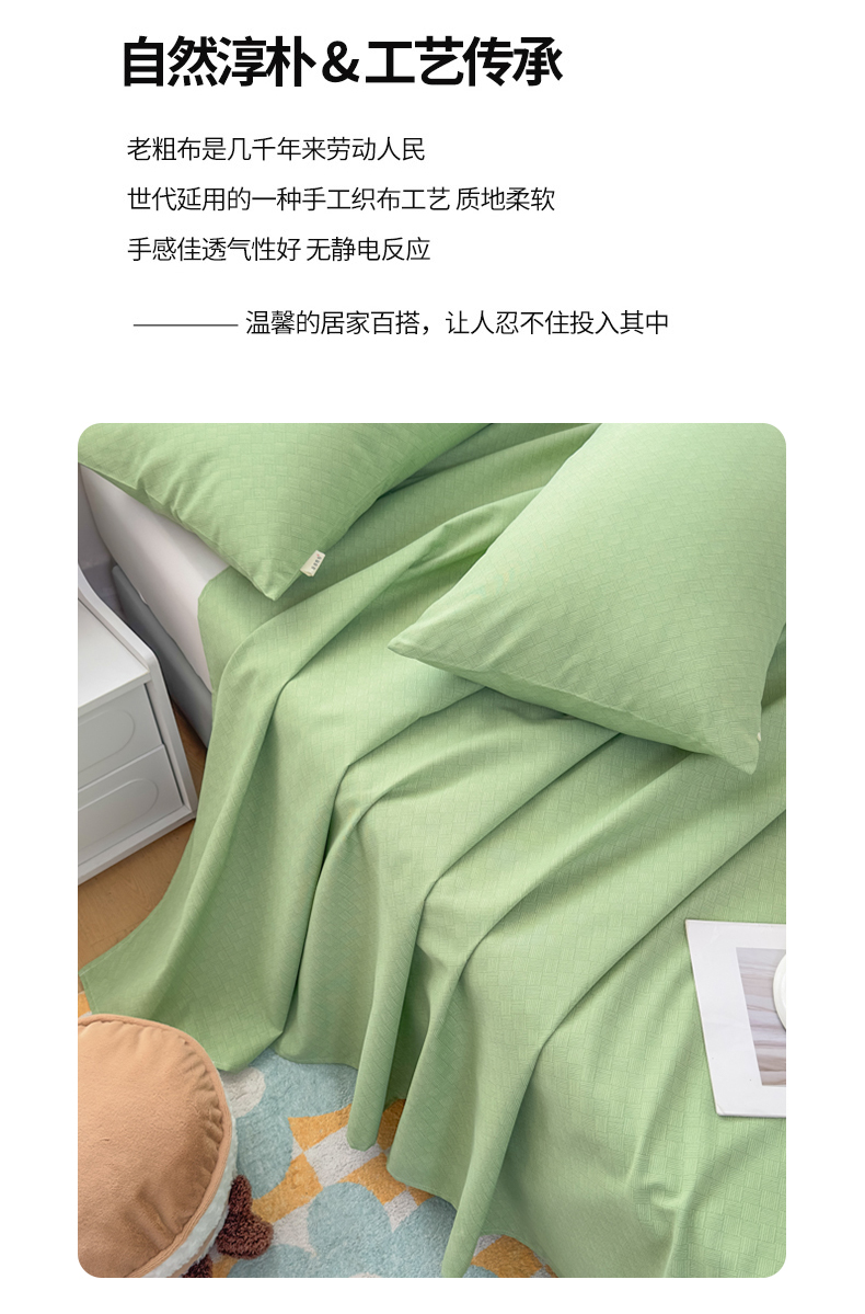 • 91家纺网 家纺一手货源 找家纺 爱彼家纺 2026夏季新款亲肤原棉老粗布透气印花床单单件热门热门床单款新升级-细沙老粗布 橄榄绿