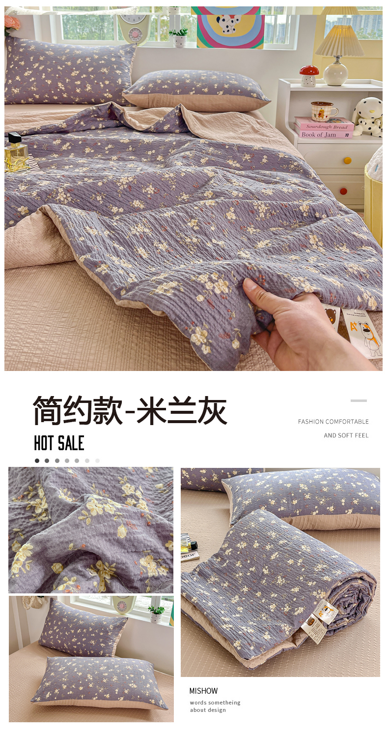 商品名称:利禾家纺 2026春夏新款泡芙纱简约夏被四件套夏凉被空调被 米兰灰-简约