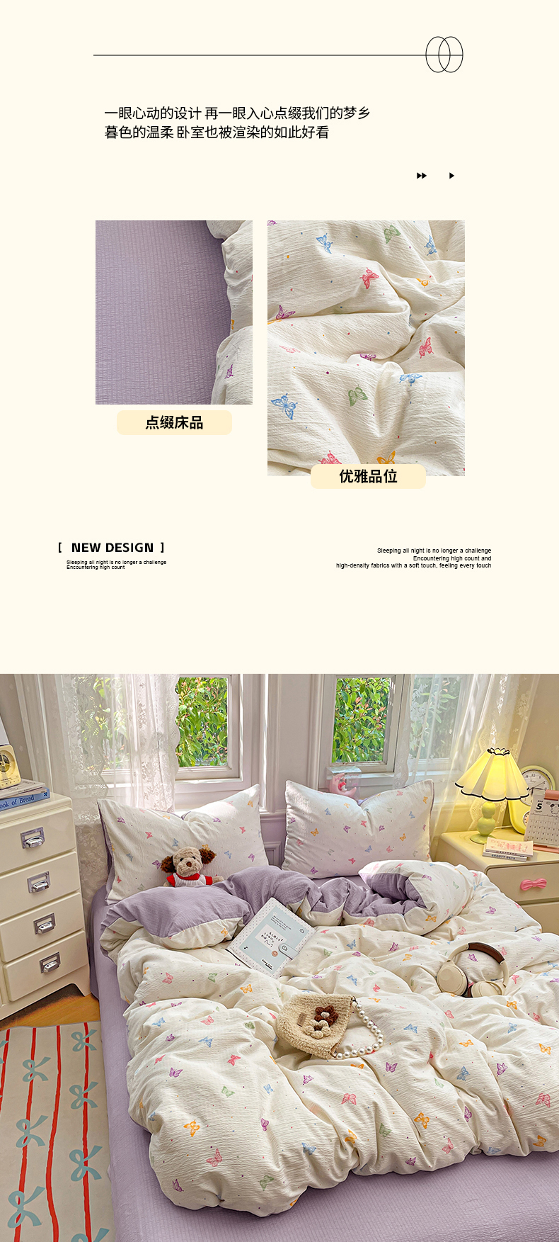 (总)梦卓家纺 2026新款超柔云感木棉双层纱四件套,花梦,花田,花序,美少女战士,蘑菇小兔屋,奶蓝KT,青蔓,青枝,星空仔,紫花小猫,紫梦蝶,半夏花语,花间小熊,花漾甜心,蓝聆风语,米娅,木槿绿,奶油薄荷,泡芙小狗,百福园